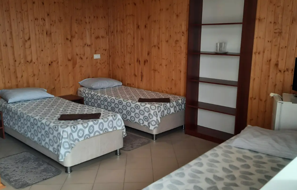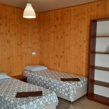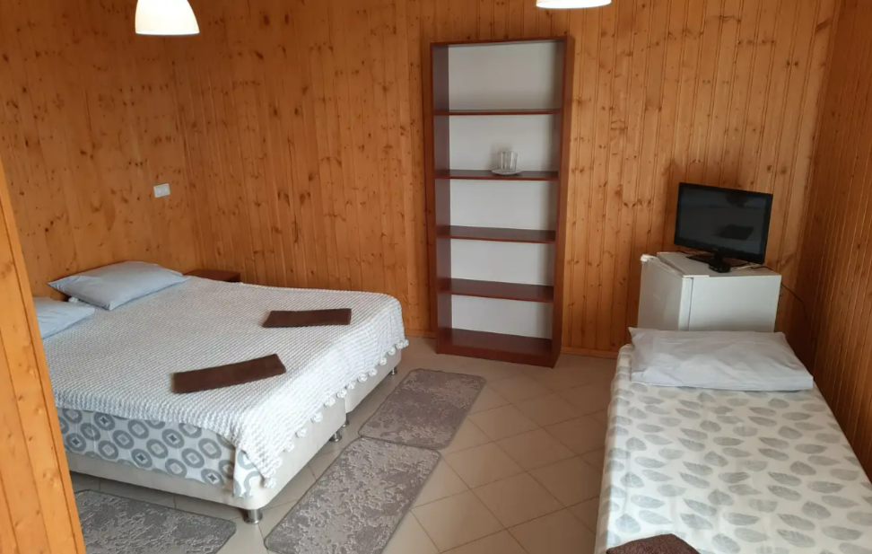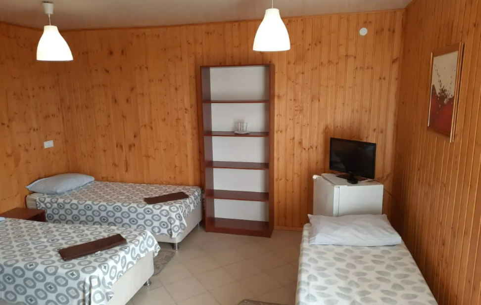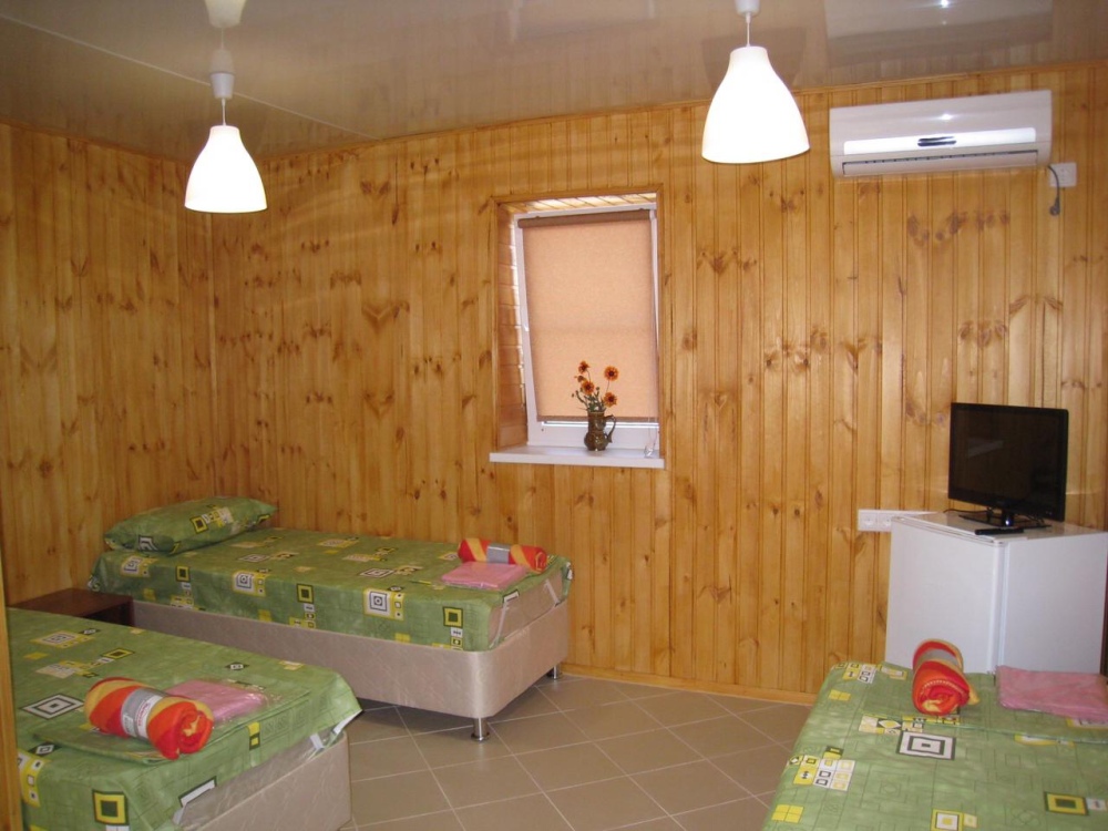 Помимо шестнадцати уютных современных номеров, рассчитанных на 3-4-местное заселение (с возможностью доукомплектования дополнительным спальным местом), в гостинице есть уютный закрытый двор со столиками, шезлонгами, детскими игрушками, теневой зоной. К услугам отдыхающих бесплатный Wi-Fi. В номерах кондиционер, телевизор, душ, туалет. Установлена новейшая система безопасности, круглосуточное видеонаблюдение. Номера отделаны экологическими материалами из древесины, имеется сейф.