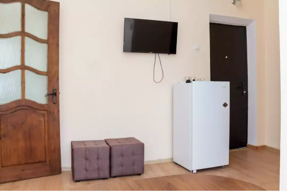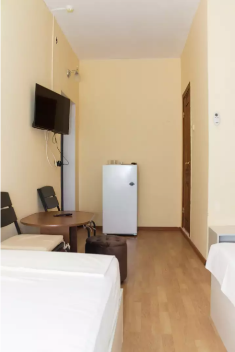 Кухней для самостоятельного приготовления пищи воспользоваться не получилось, так как она очень маленькая и находиться в другом помещении, через двор. Своей столовой у них нет.