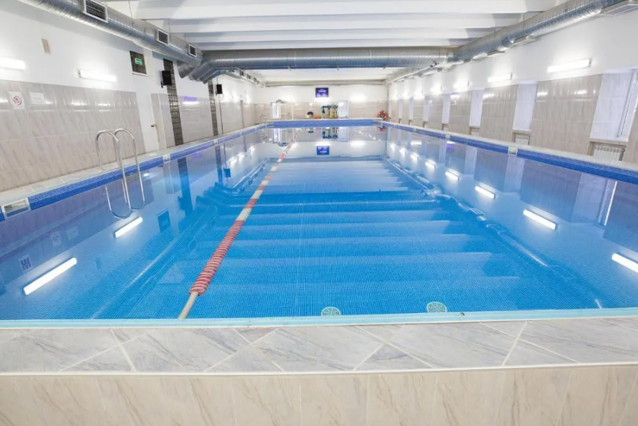 Спортивный крытый бассейн 25 метров и сауны при бассейне - безлимит, инвентарь для плавания (кроме шапочек). В крытом бассейне шапочки обязательны, вы можете взять их с собой или приобрести на месте. График работы с 8:00 до 22:00. Санитарный час с 14:00 до 15:00;