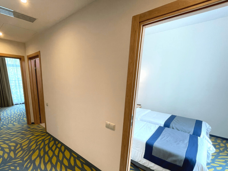 Большой двухкомнатный номер с изолированными спальнями, оборудованные одной двуспальной кроватью «King-size» или двумя односпальными кроватями.