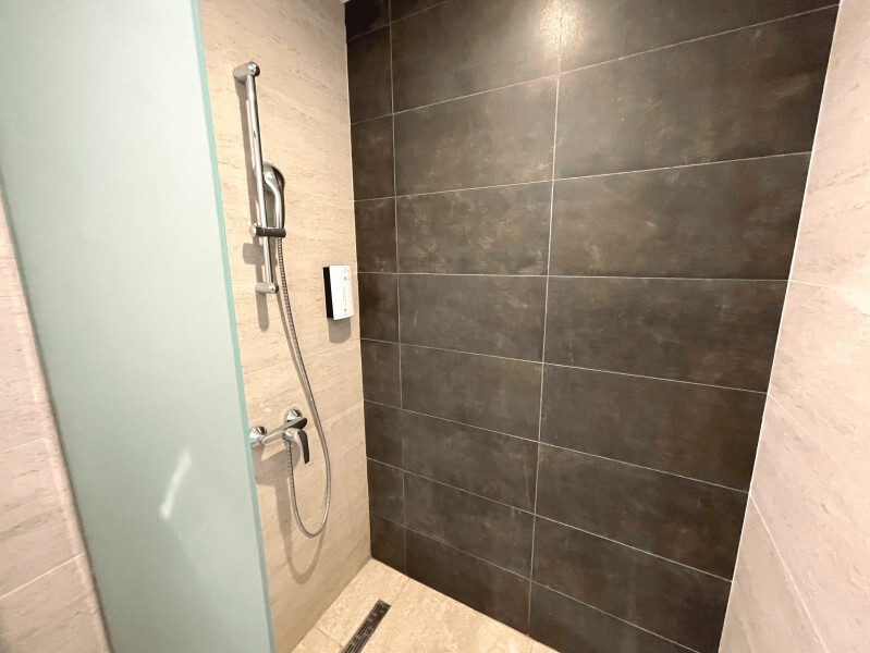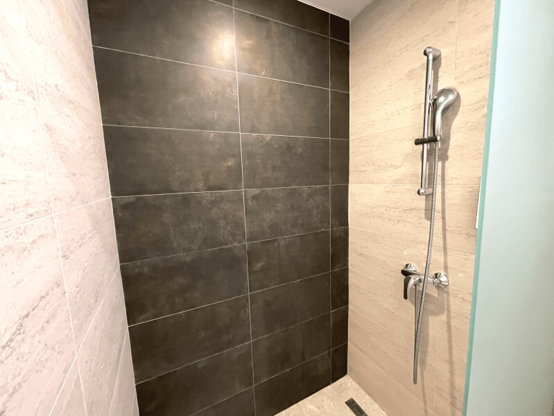 Ванная комната оборудована просторной душевой кабиной, набором полотенец, косметическими принадлежностями и феном.