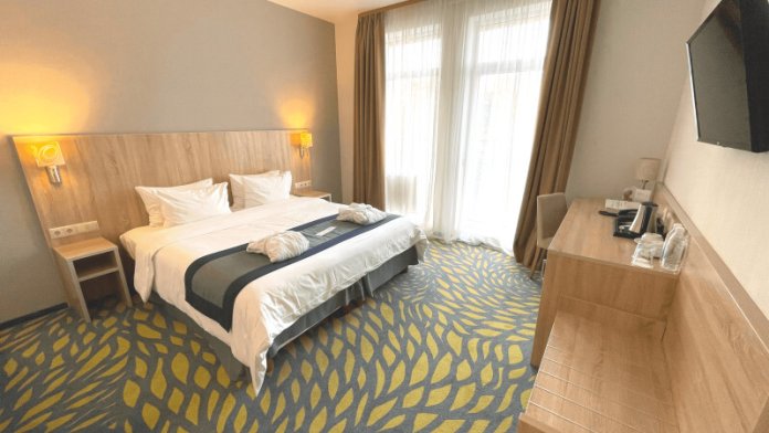 Номер укомплектован плазменной панелью, рабочим местом, телефоном, кондиционером, сейфом, чайной станцией и мини-холодильником. В номер при заезде предоставляются тапочки и махровые халаты, бутилированная вода. В номере имеется возможность предоставления дополнительного спального места: евро-раскладушка или детская кроватка-манеж.