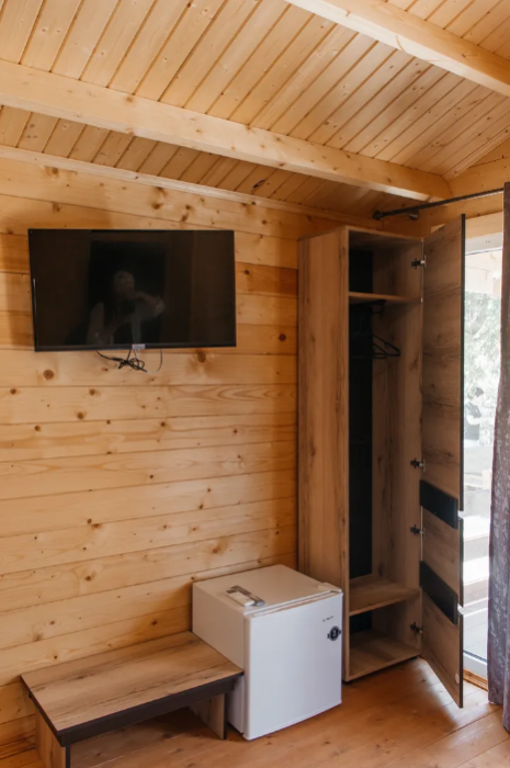 База отдыха TRIO предлагает размещение в комфортабельных 4-местных домиках из соснового сруба, которые идеально подойдут как для семейного, так и для дружеского отдыха. Каждый домик оборудован ванной комнатой, что гарантирует вам максимальный комфорт и уединение. Уборка в домиках осуществляется самостоятельно, а смена постельного белья и полотенец производится на шестые сутки Вашего проживания.