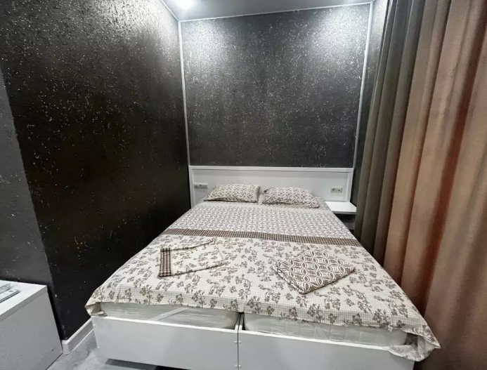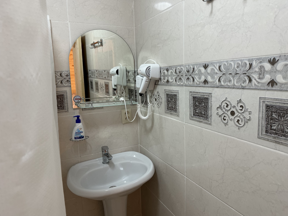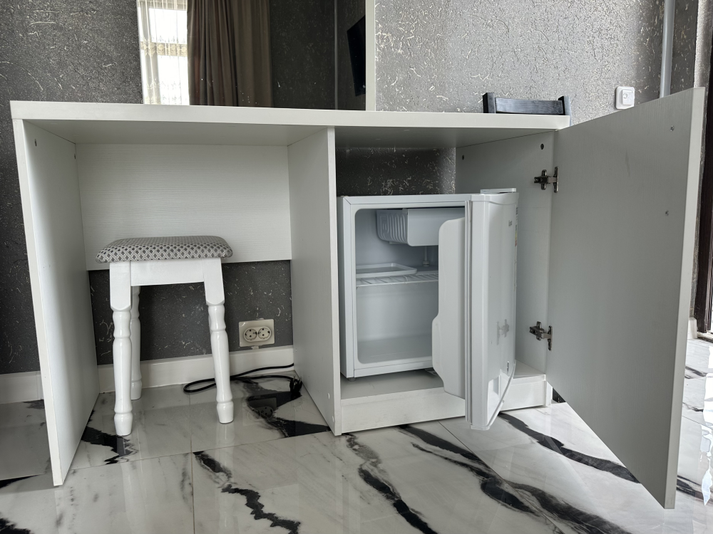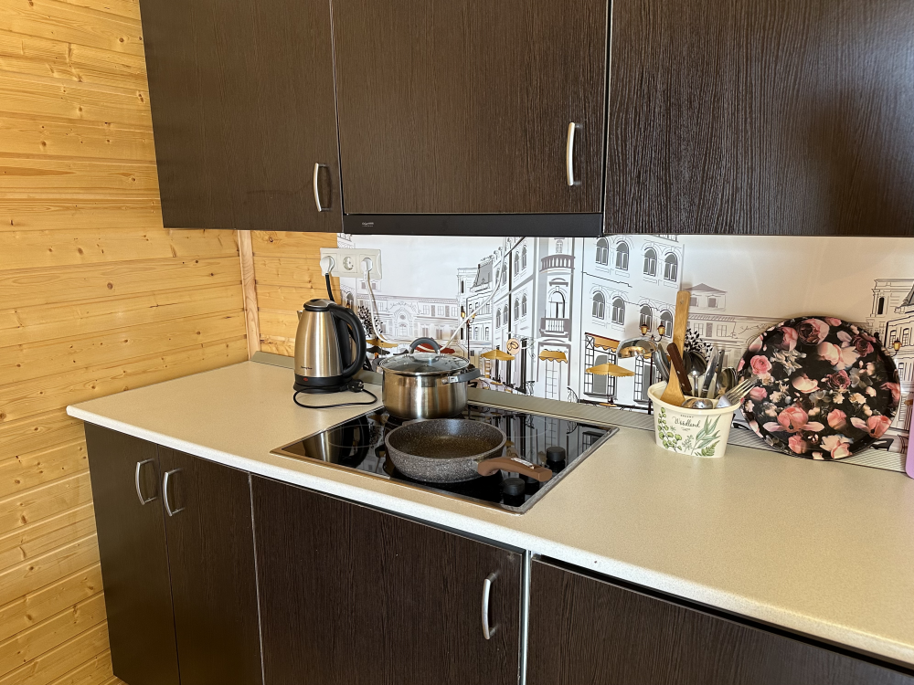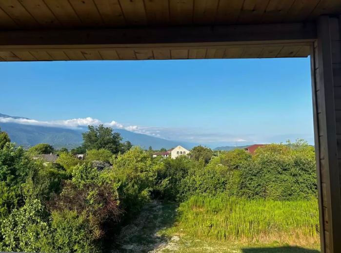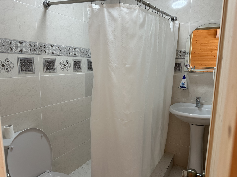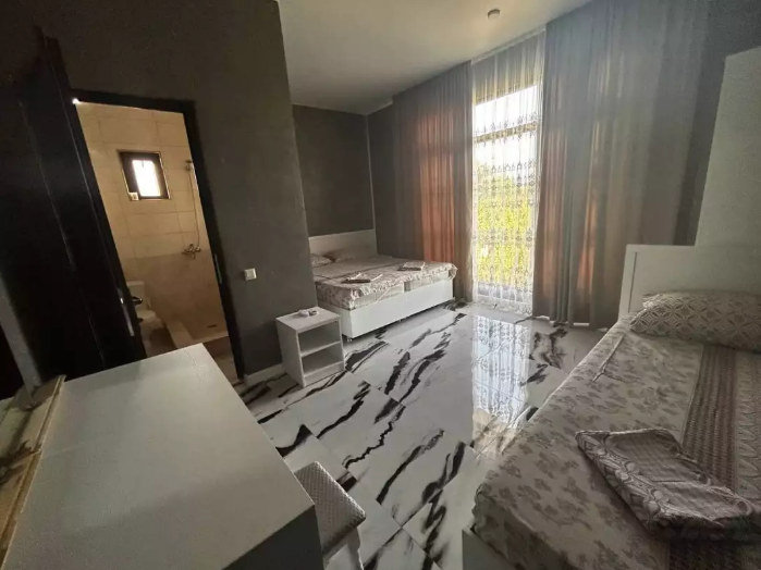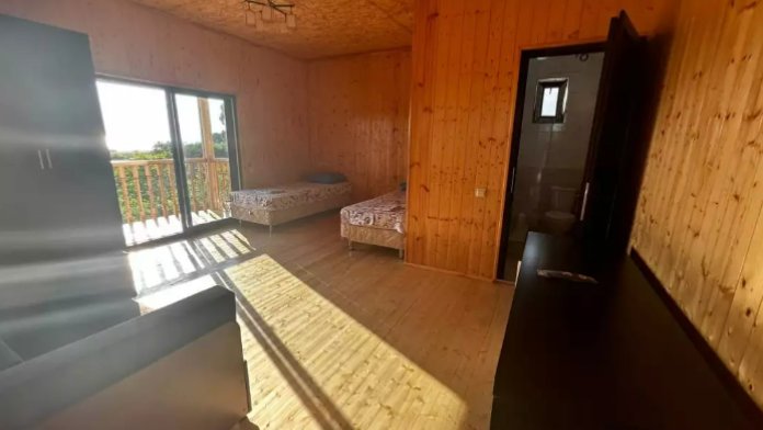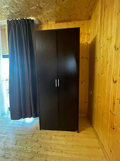 Номер рассчитан до 3х человек - в номере двуспальная и односпальная кровати, а также всё необходимое для приятного отдыха: телевизор, спит система, холодильник, стол, зеркало, шкаф для одежды, фен. Душ и туалет также расположены в номере. Из окон открывается захватывающий вид на море и горы. На территории есть общая кухня со всем необходимым для приготовления и приема пищи, а также каркасный бассейн, зона отдыха и барбекю.