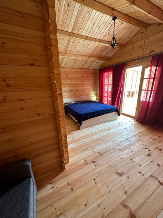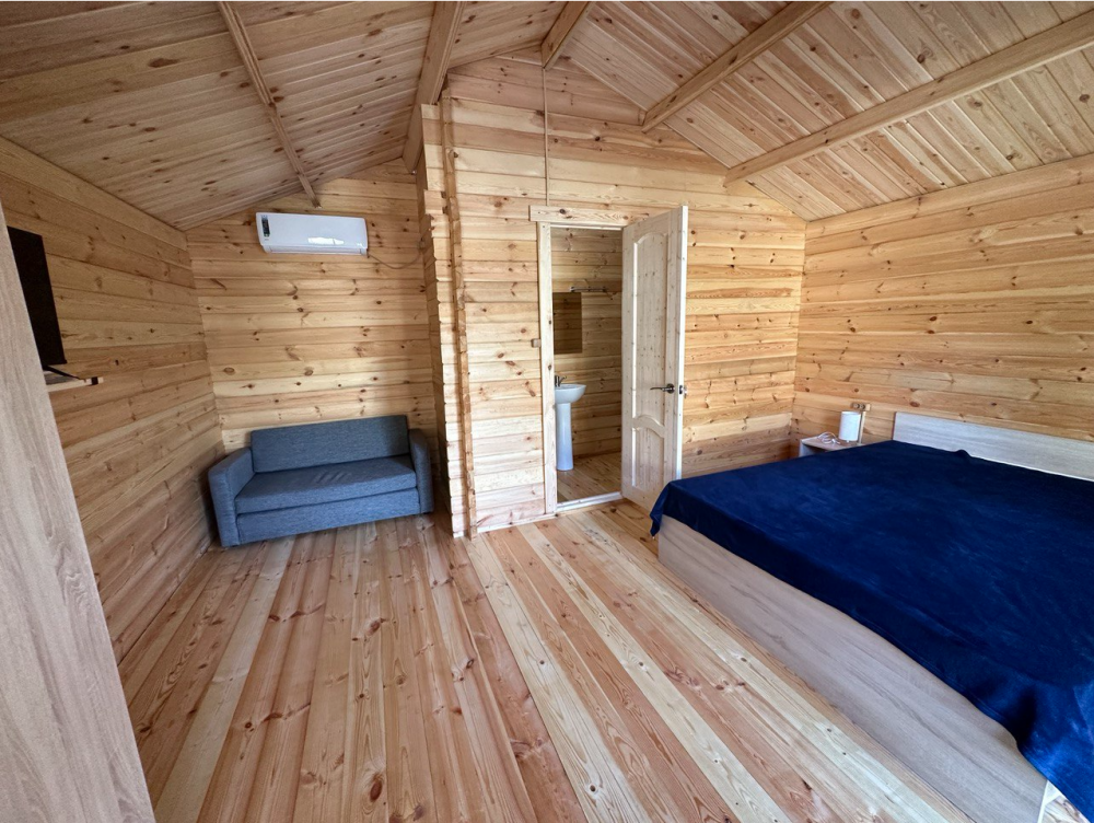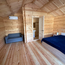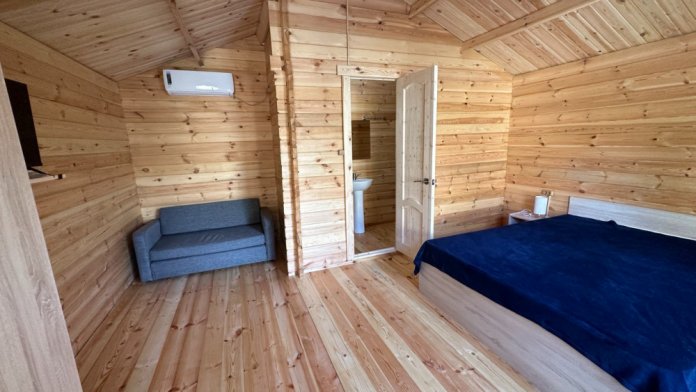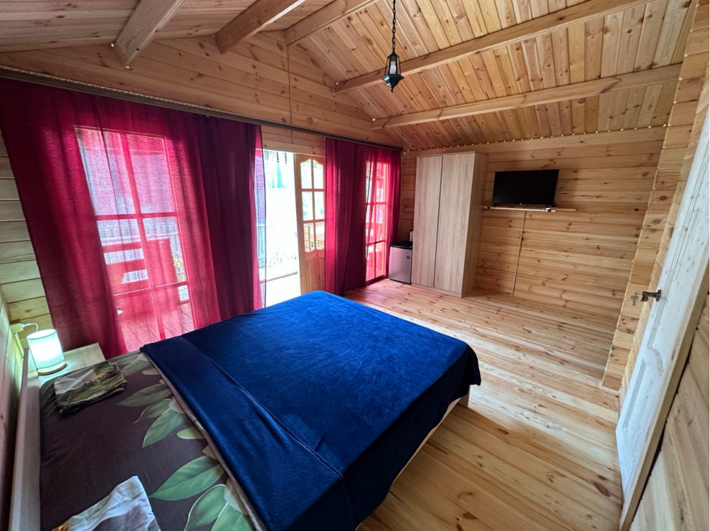 Эко-коттеджи под ключ «На улице Харания» находятся в Сухуми. Вместительность - 3-4 человека в одном домике. Коттеджи площадью 30 кв м с собственным санузлом и балконом.