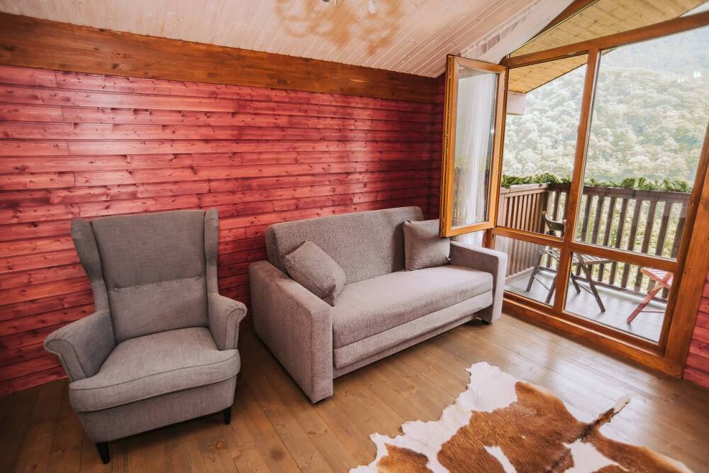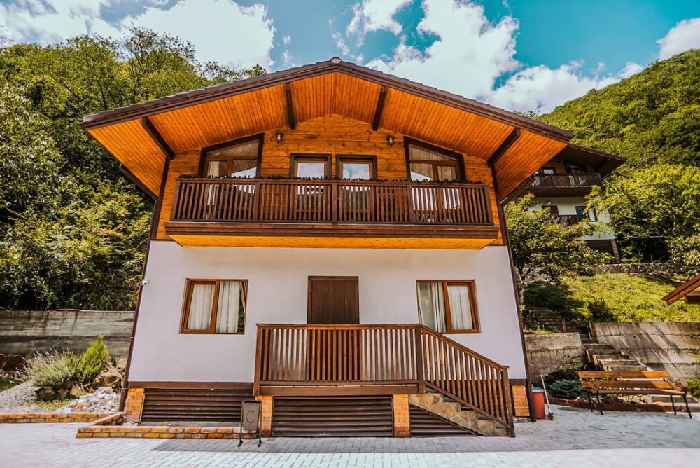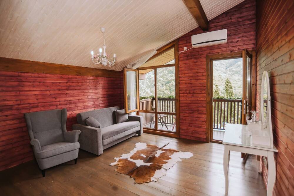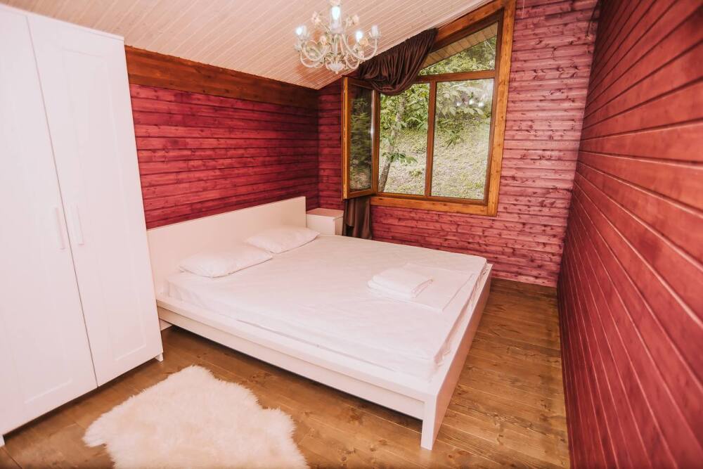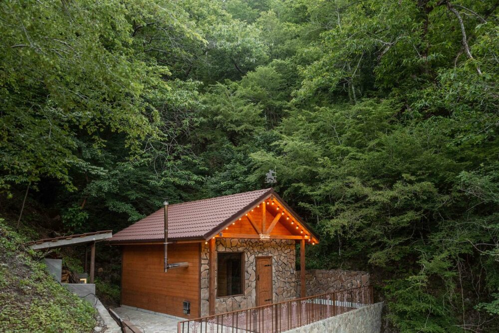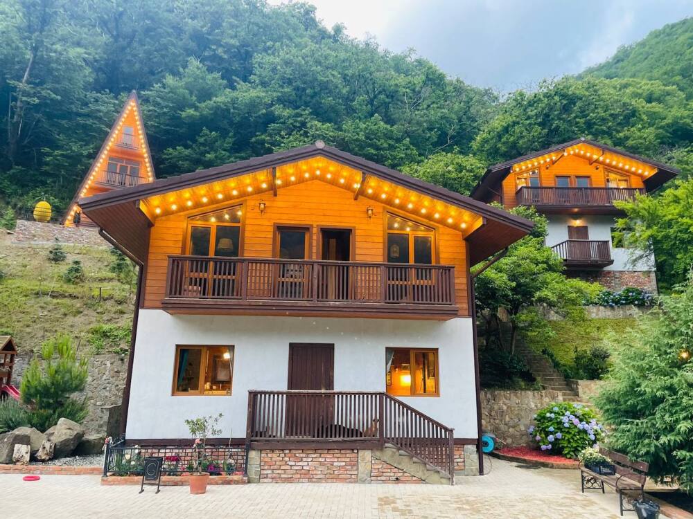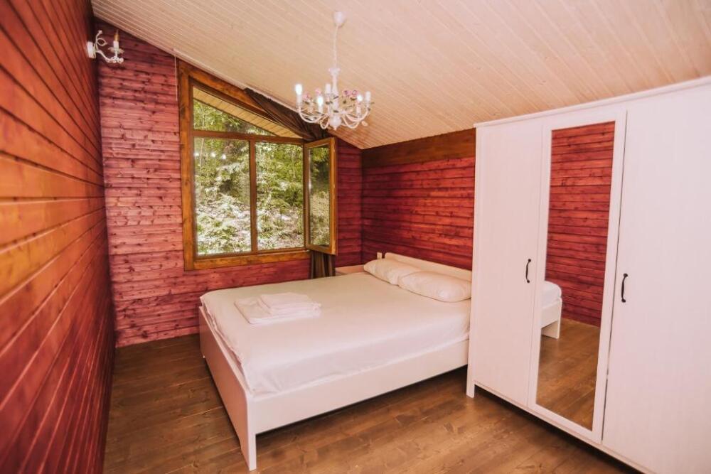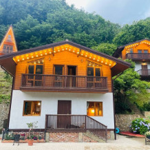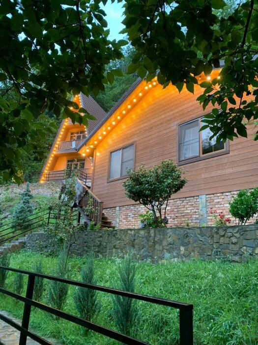 Отдельный комплекс, расположенный среди живописной природы, состоит из двухэтажных коттеджей, которые рассчитаны на размещение от 2 до 10 человек. Домики выстроены с применением экологически чистых материалов, в каждом номере имеется санузел с душем, кондиционер, телевизор и холодильник. С балконов открываются живописные виды на горы, реку Бзыбь и ущелье.