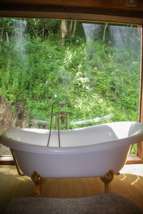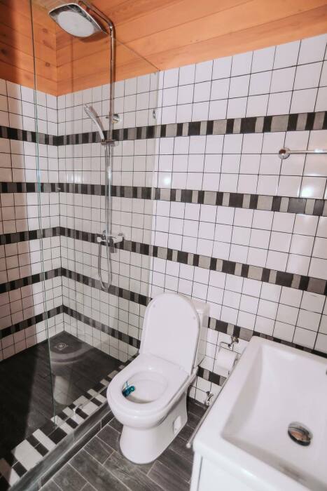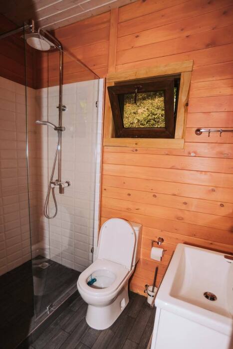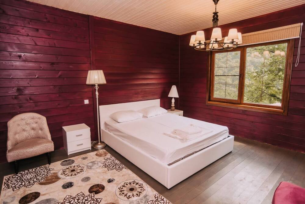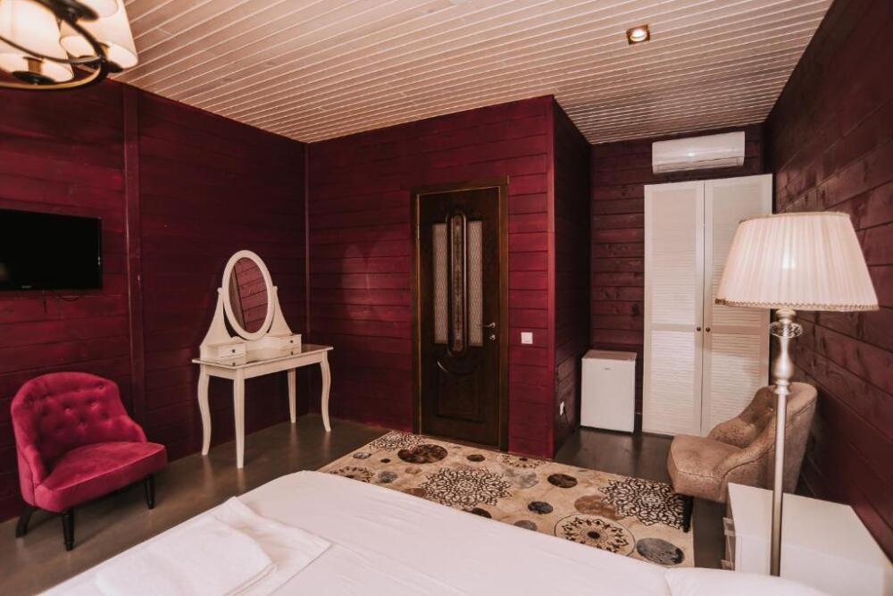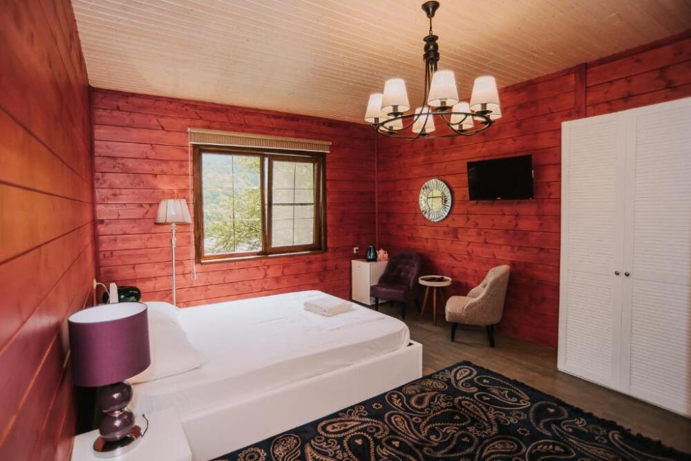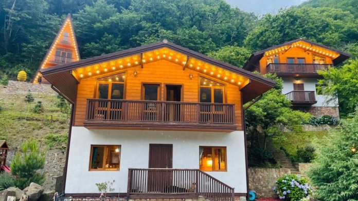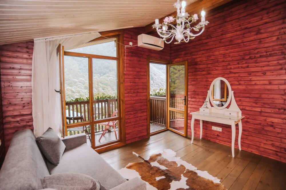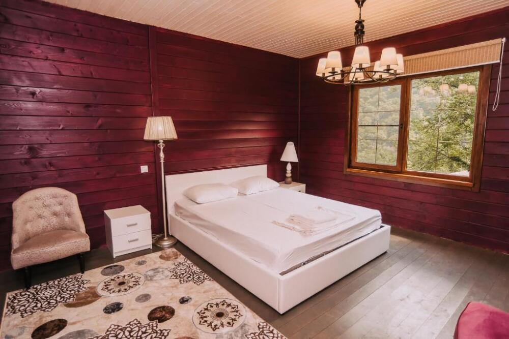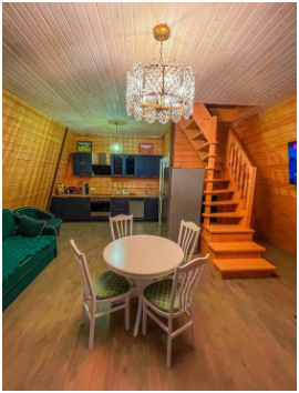 Отдельный комплекс, расположенный среди живописной природы, состоит из двухэтажных коттеджей, которые рассчитаны на размещение от 2 до 10 человек. Домики выстроены с применением экологически чистых материалов, в каждом номере имеется санузел с душем, кондиционер, телевизор и холодильник. С балконов открываются живописные виды на горы, реку Бзыбь и ущелье.