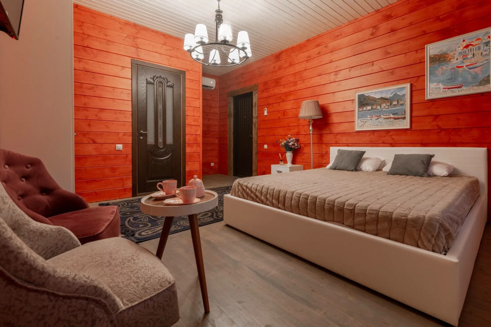 К услугам гостей общая кухня, где они самостоятельно могут приготовить себе еду. В любое время отдыхающие могут расслабиться в сауне, отдохнуть на большой остекленной веранды с видом на горы. Для автовладельцев на территории комплекса оборудована охраняемая парковка, а для юных гостей организована игровая площадка.