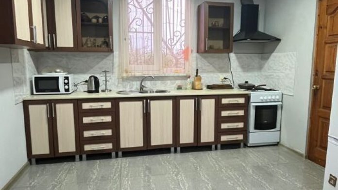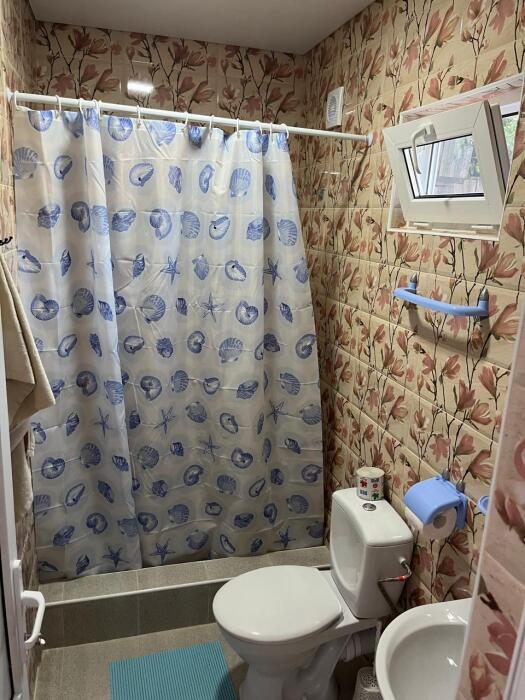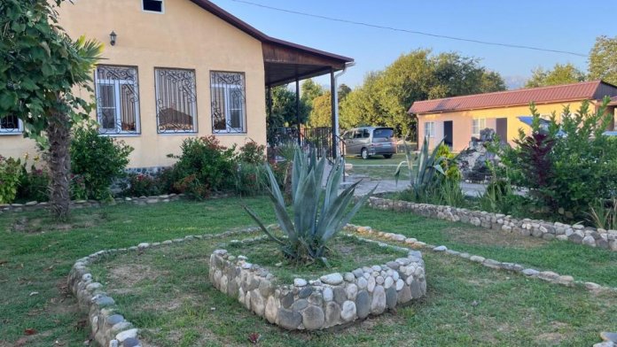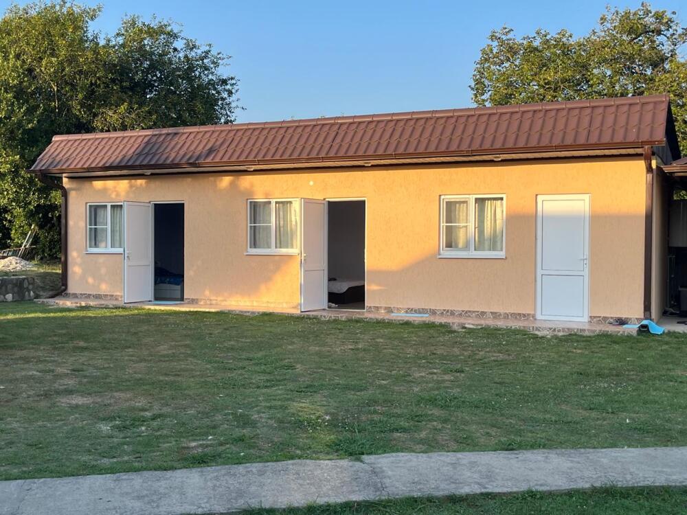 Мы находимся между горами и морем, в живописном месте под названием Золотой берег. Пляж галично-песчаный, кругом зелень.