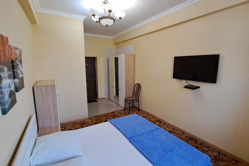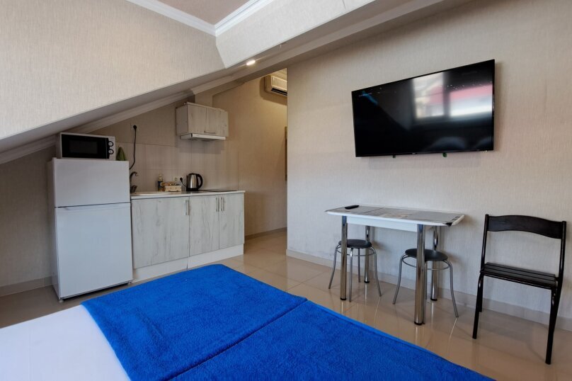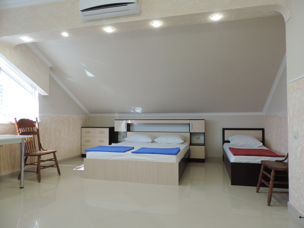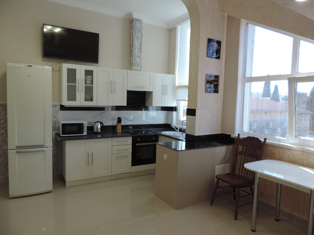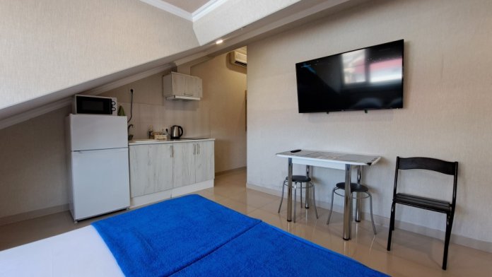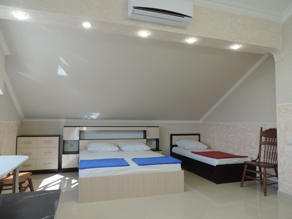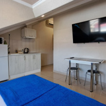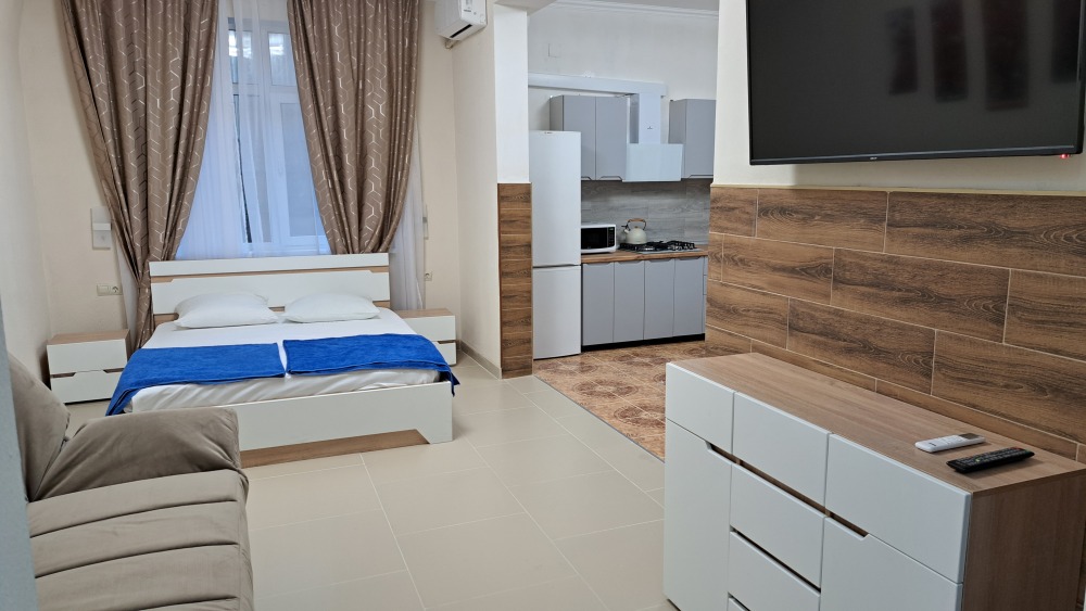 Большая, просторная, светлая студия в центре Адлера, в гостевом доме семейного типа, в этом номере есть все для комфортного спокойного отдыха, полноценная кухня со всей бытовой техникой, душ, туалет, стиральная машинка, кондиционер обеспечит прохладу в летнюю жару, большой телевизор.
