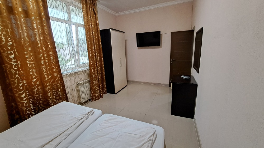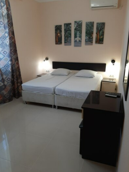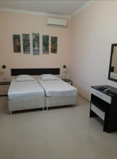 На территории есть летняя веранда, с кухней, мангал, стоянка для машин. В каждом номере кондиционер, удобства, телевизор, холодильник, сейф, в двухкомнатных номерах семейного типа есть кухня, стиральная машинка.