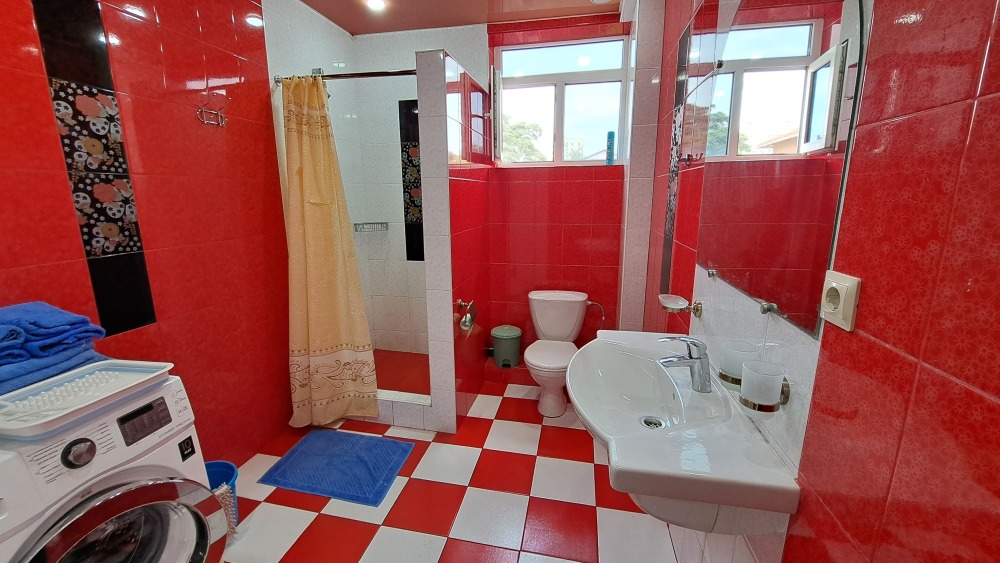 Номер люкс с кухней, на первом этаже, в номере душ, туалет, плоский телевизор, все кухонные принадлежности, холодильник, микроволновая печь, столовые принадлежности, посуда. В ванной комнате стиральная машина, отдельный вход.