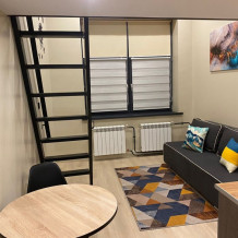 Светлый двухуровневый номер оформленный в современном стиле! В номерах установлены телевизоры с плоским экраном. В том числе - собственная ванная комната с феном, стиральной машиной и бесплатными туалетно-косметическими принадлежностями. Предоставляются гладильные услуги и услуги прачечной. Желающие могут готовить на мини-кухне с холодильником, микроволновой печью и электрическим чайником.. Возможно заселение до 3-х человек.