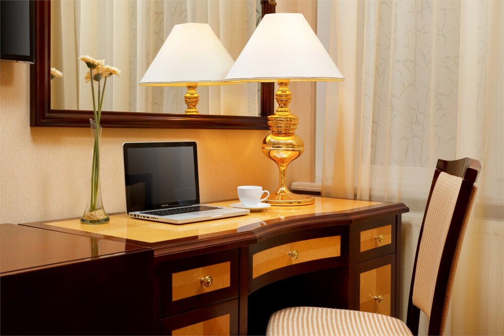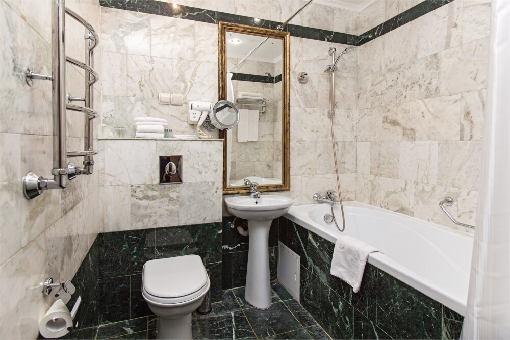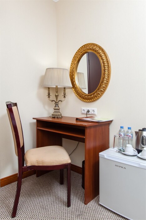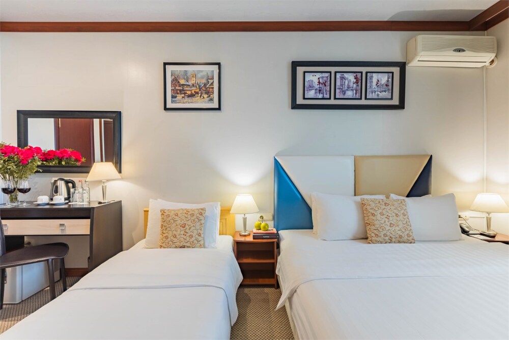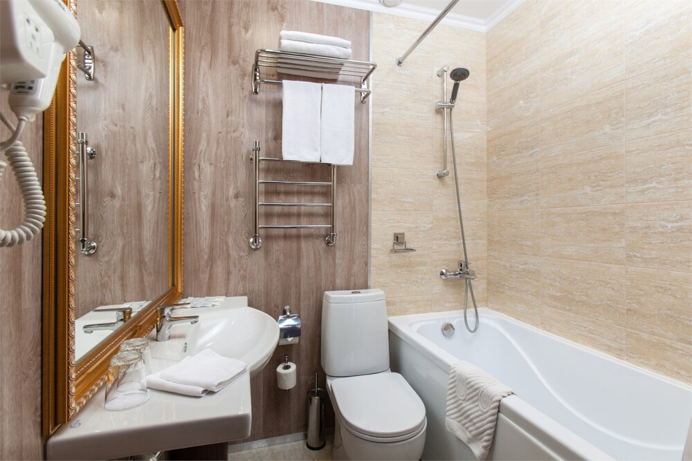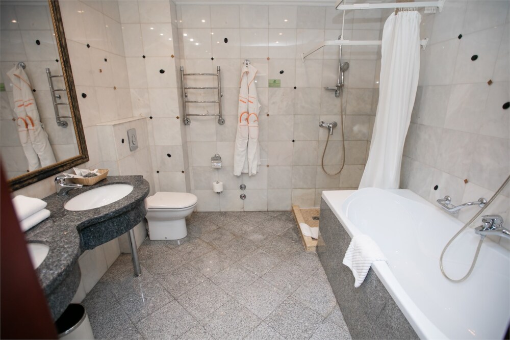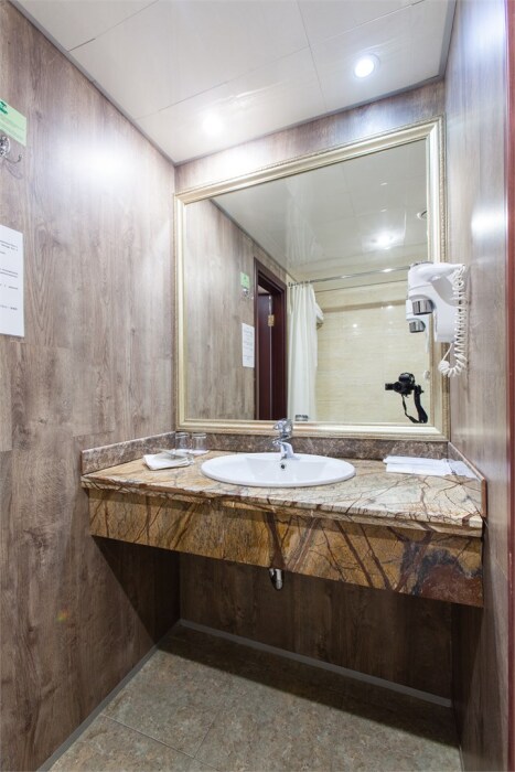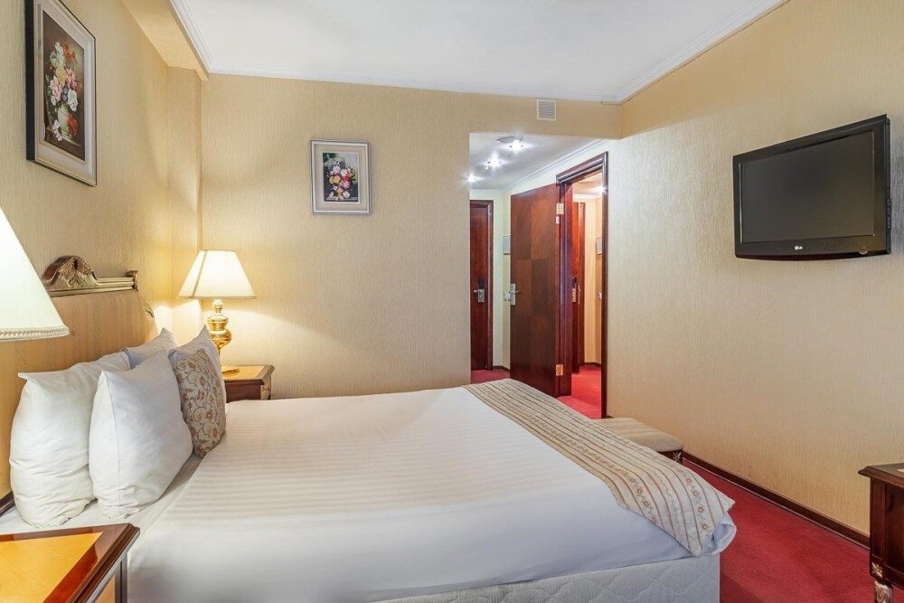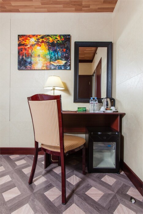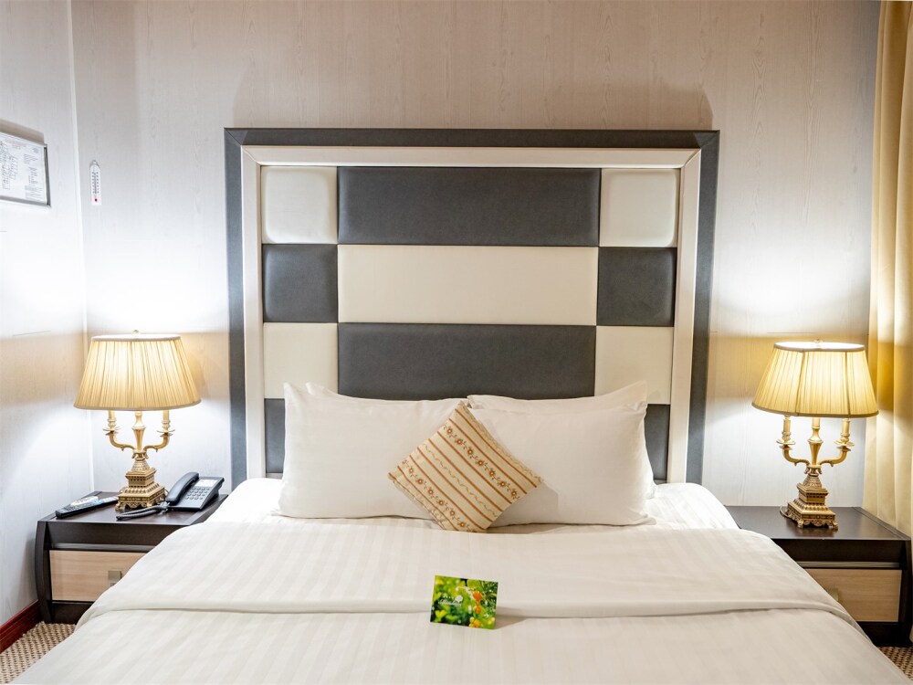 В номере: одна двуспальная (160 см*200 см, или 180 см*200 см) или две раздельные кровати ( 90 см*200 см, или 120 см*200 см).