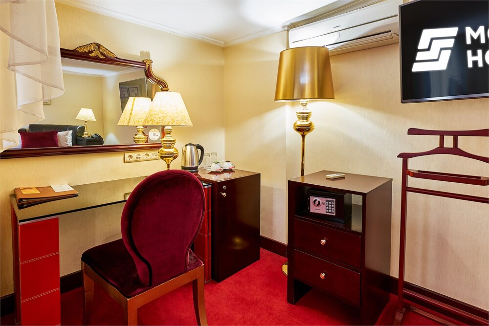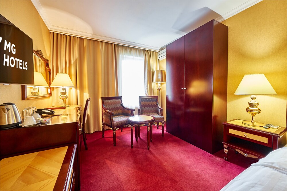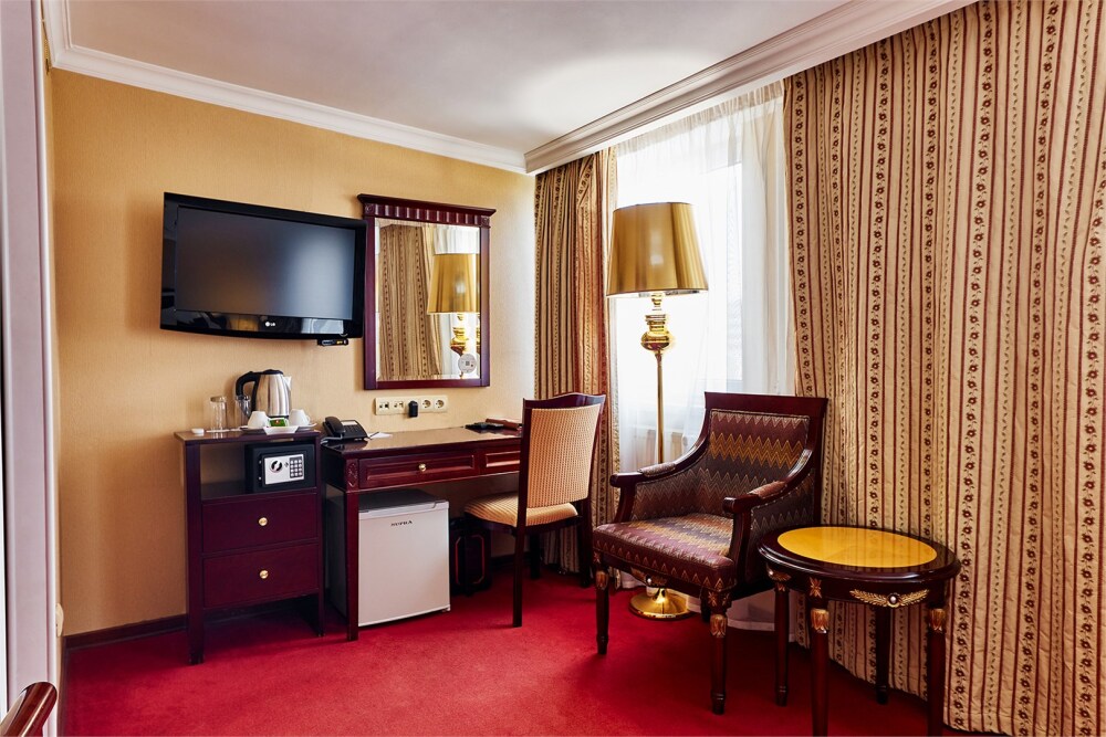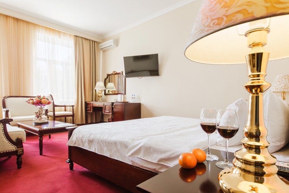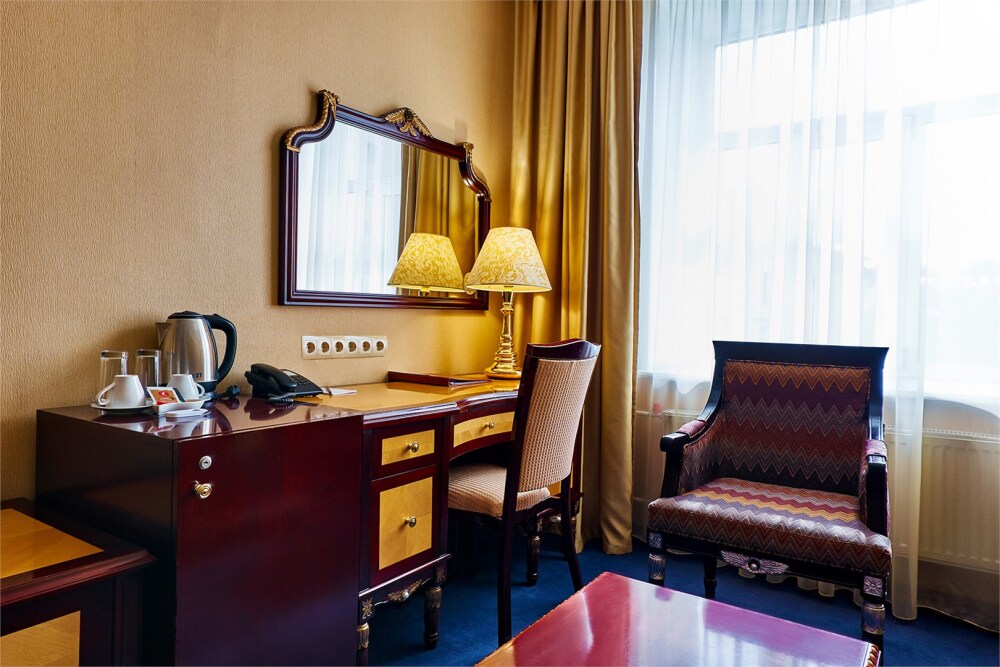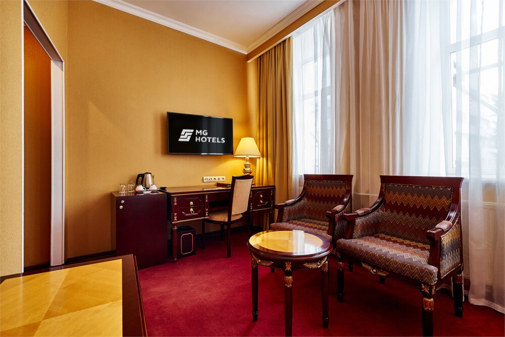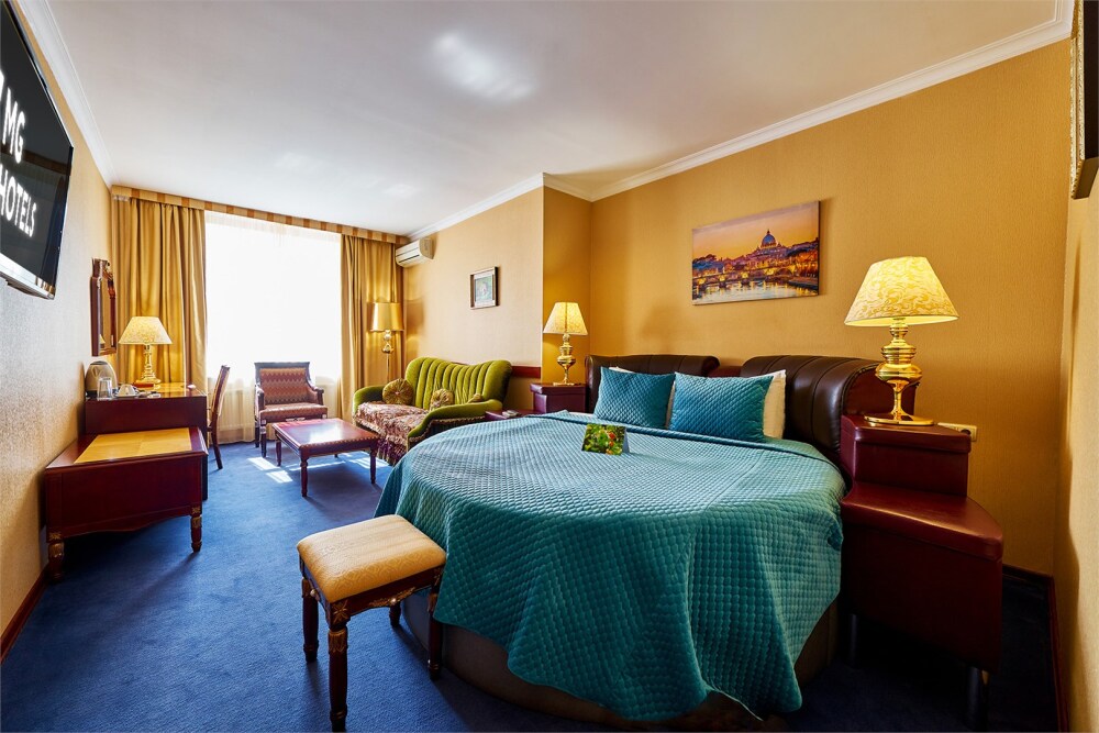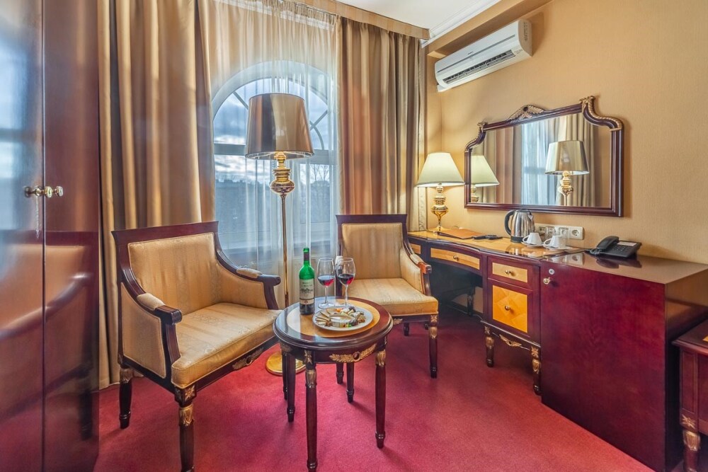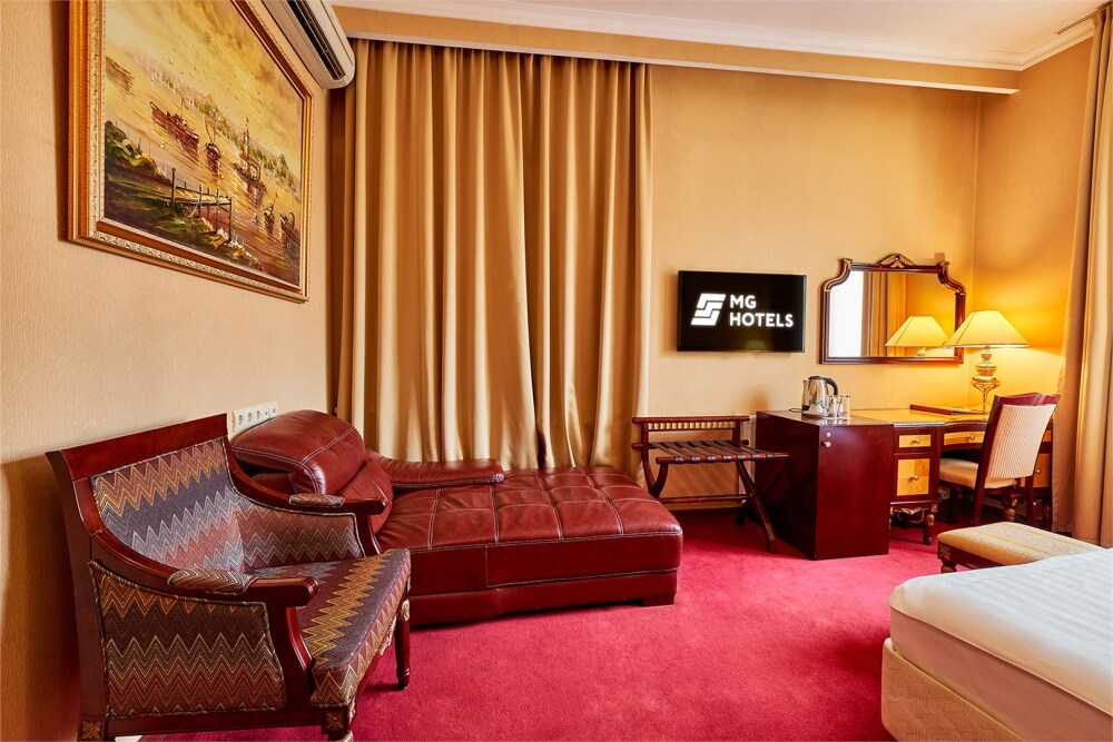 Во всех номерах предусмотрена рабочая зона, доступ к Wi-Fi, мини-бар, сейф, гладильные принадлежности, все необходимое для приготовления чая, плазменный телевизор со Смарт-ТВ, а также просторные ванные комнаты с душем или ванной. В отеле присутствуют 2-комнатные семейные коннект-номера с двумя санузлами, со всем необходимым для длительного проживания и широким спектром услуг для размещения с детьми всех возрастов. Для деловых поездок имеются коворкинг-номера, расположенные на клубном этаже с выходом на веранду. Отель располагает номерами с круглыми кроватями и джакузи, декорированными оригинальными работами современных художников, антикварными аксессуарами.