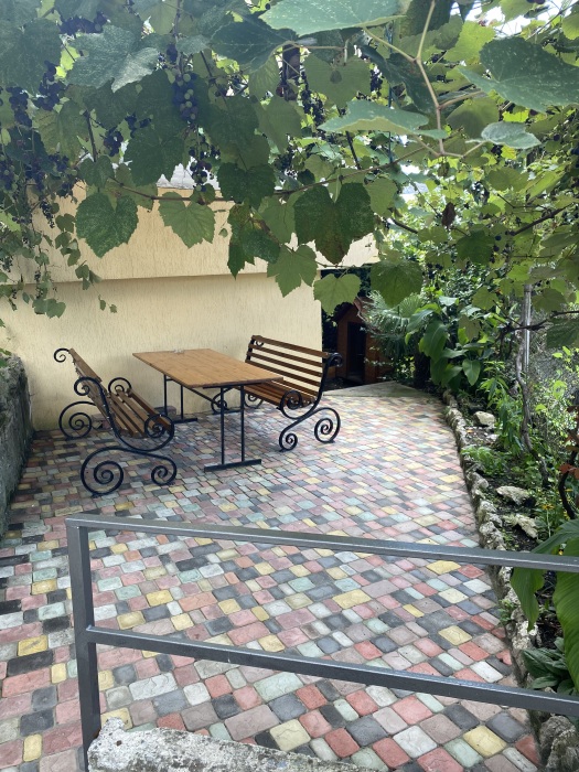 К услугам наших гостей: общая кухня со всем необходимым для приготовления и приёма пищи; несколько уютных беседок; детская игровая зона (деревянный детский домик и песочница); спортивный уголок (силовой комплекс и боксерская груша ); мангальная зона. На территории есть мандариновый сад, виноградные беседки, небольшой огород с овощами и фруктами.