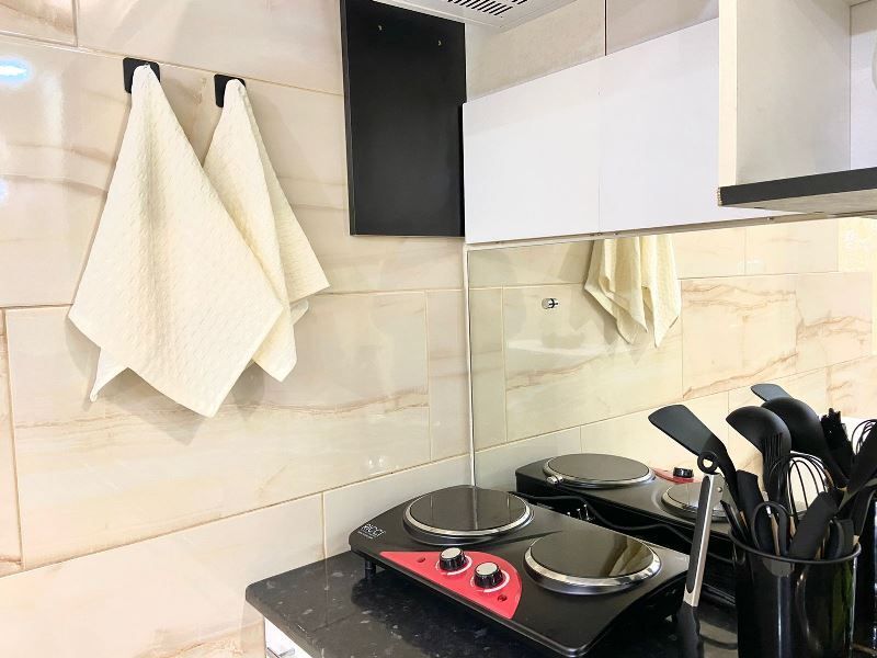 Кухонный гарнитур оборудован всем необходимым: холодильник, микроволновка, электрический чайник, электроплита, посуда. Предоставляем постельное белье, по 2 полотенца каждому гостю. Вместимость до 4 человек.