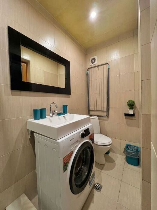 В квартире есть всё необходимое для комфортного проживания: подача горячей и холодной воды круглосуточно, 2 кондиционера, шикарная двуспальная кровать с ортопедическим матрасом, шкаф-купе с зеркалом, раскладной диван, 2 плазменных телевизора, спутниковое ТВ, Wi-Fi, гладильная доска с утюгом, сушилка для белья, фен для волос, стиральная машина.