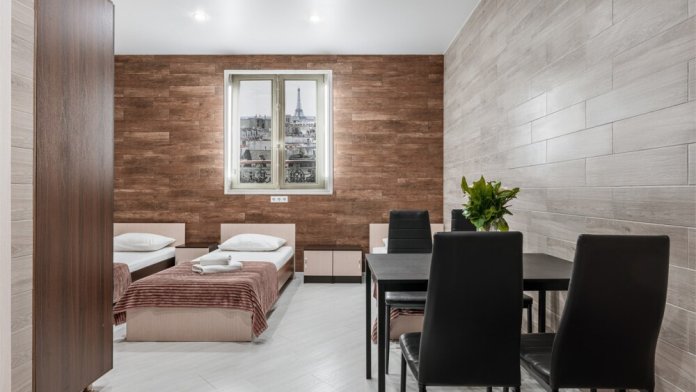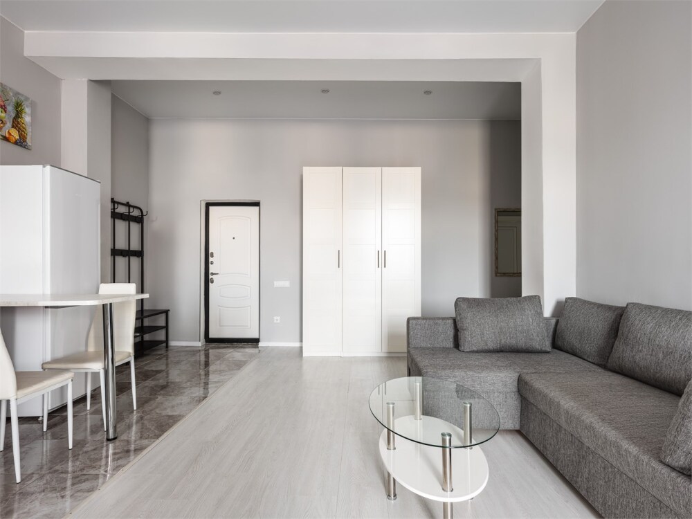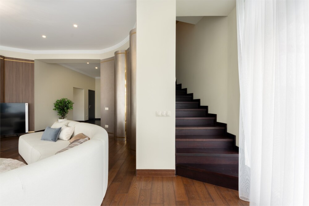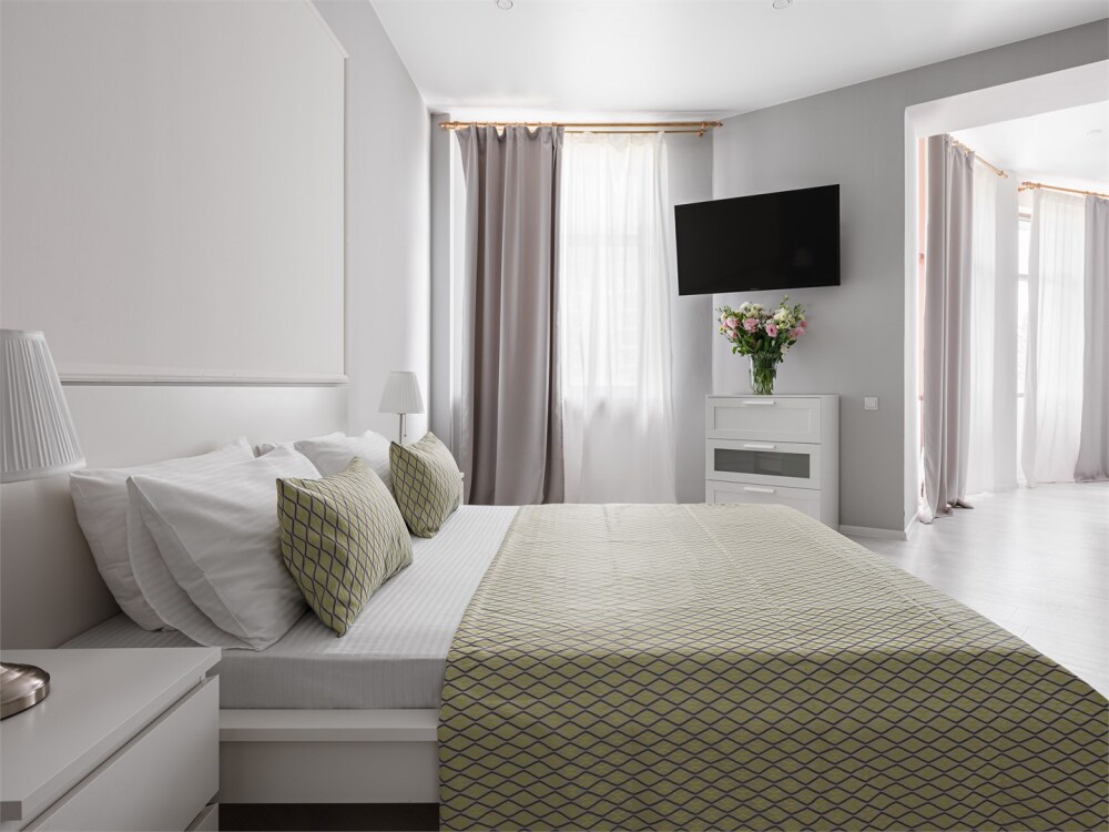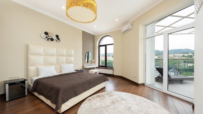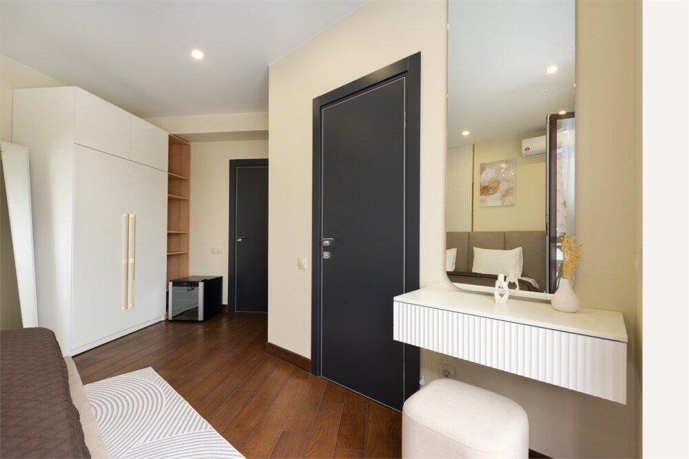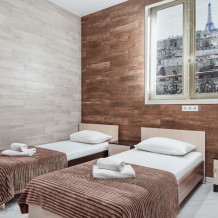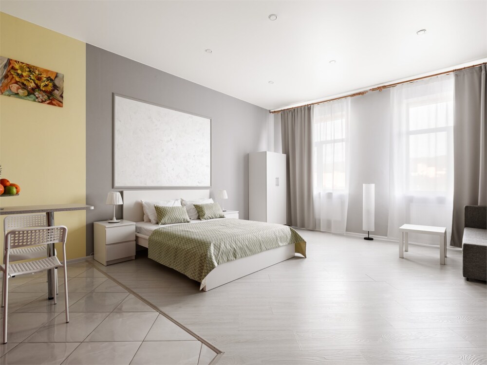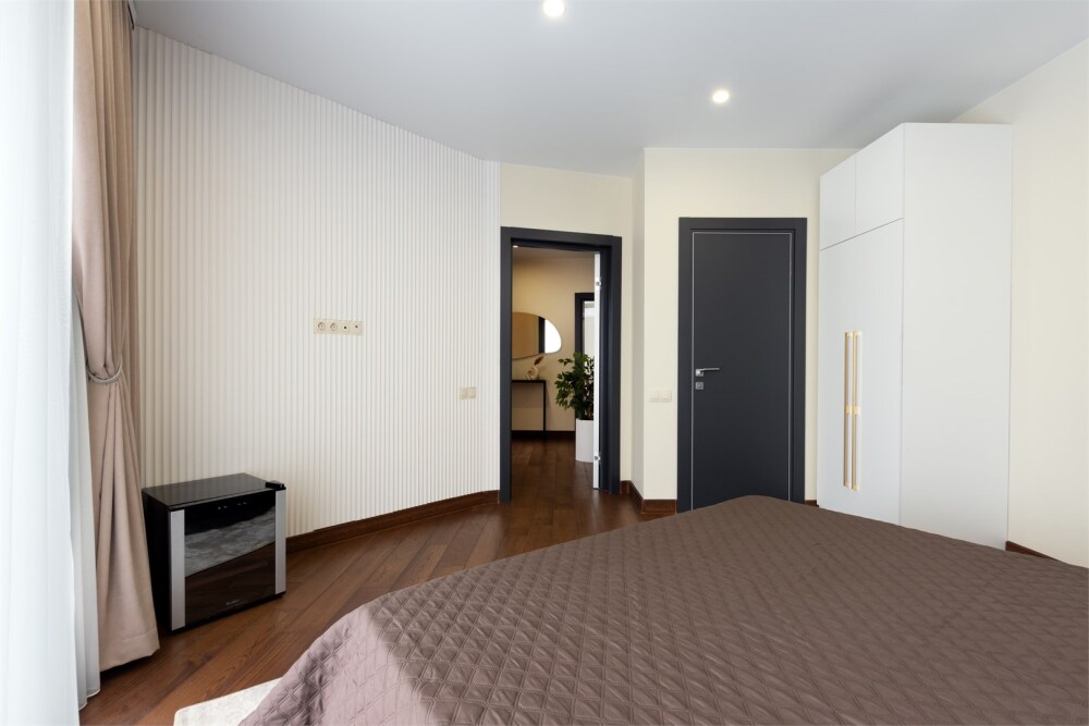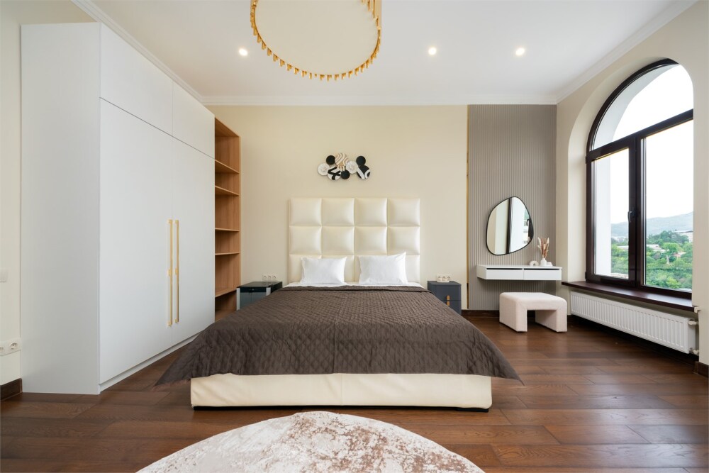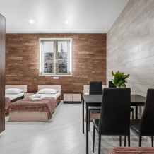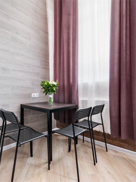 Апартаменты представляют собой двухкомнатные апартаменты, включающие гостиную, спальню, лоджию, кухню и террасу с великолепным видом на город и склоны Джинальского хребта.