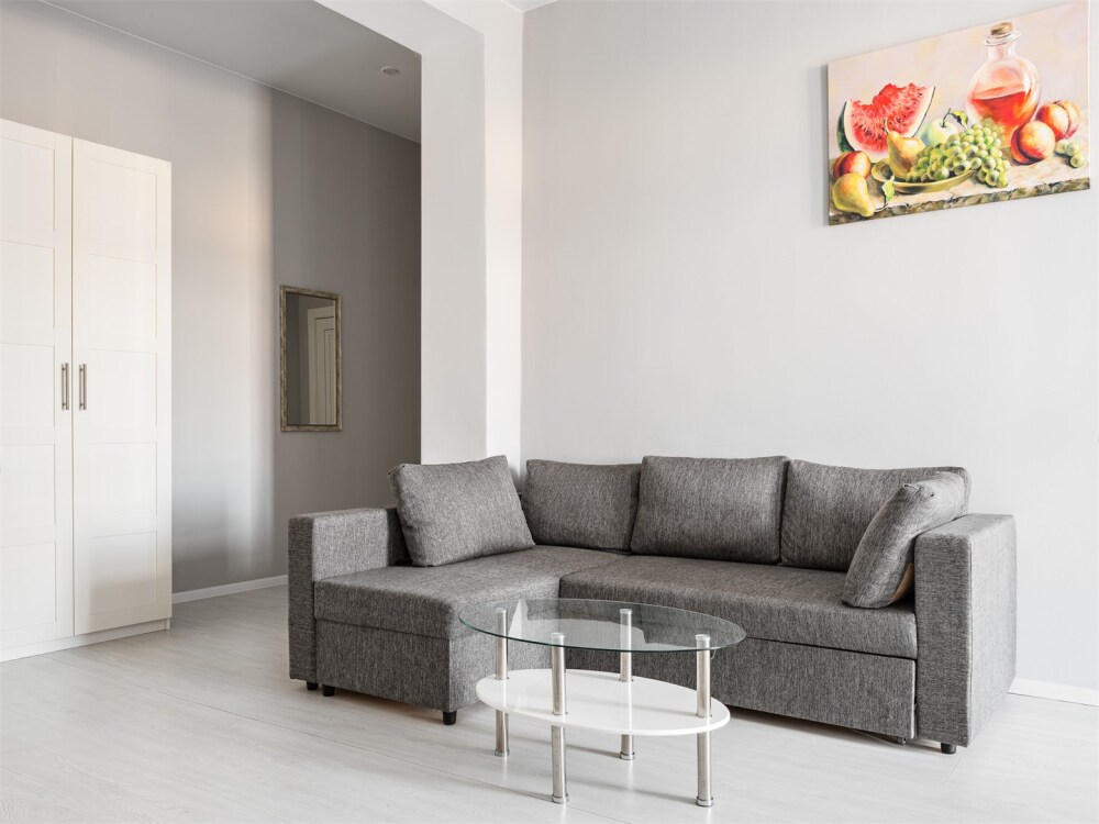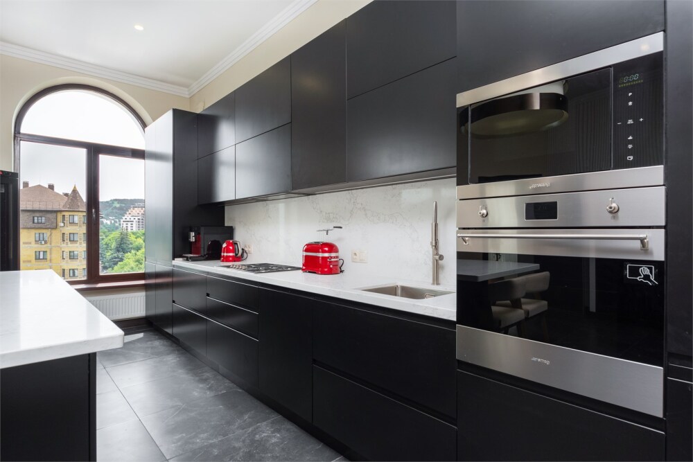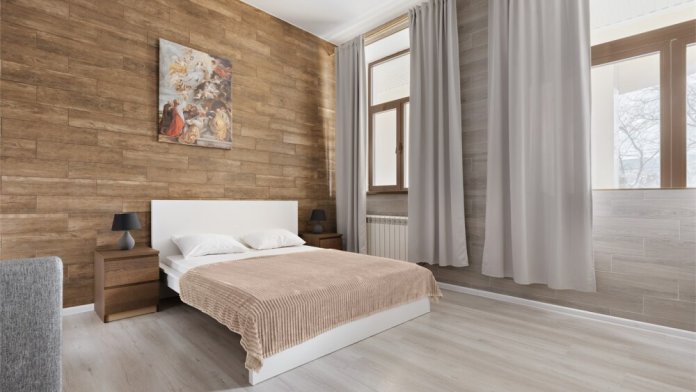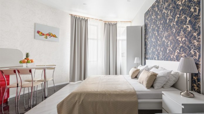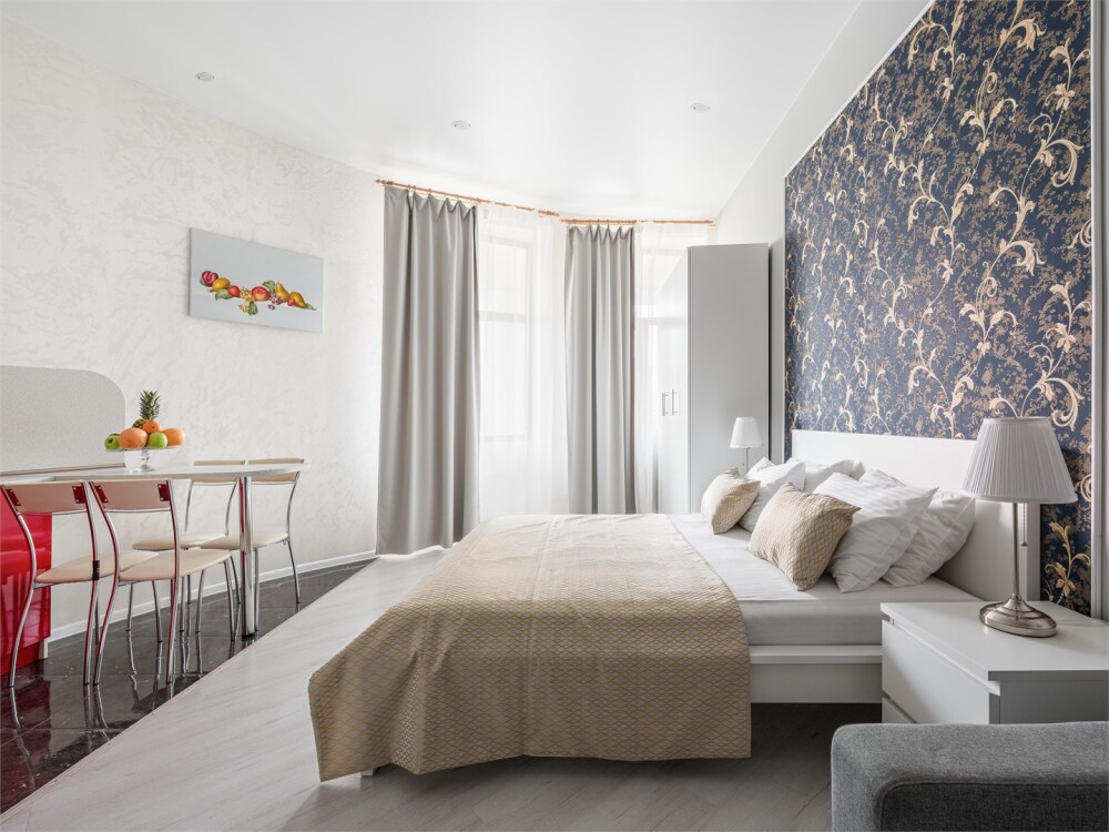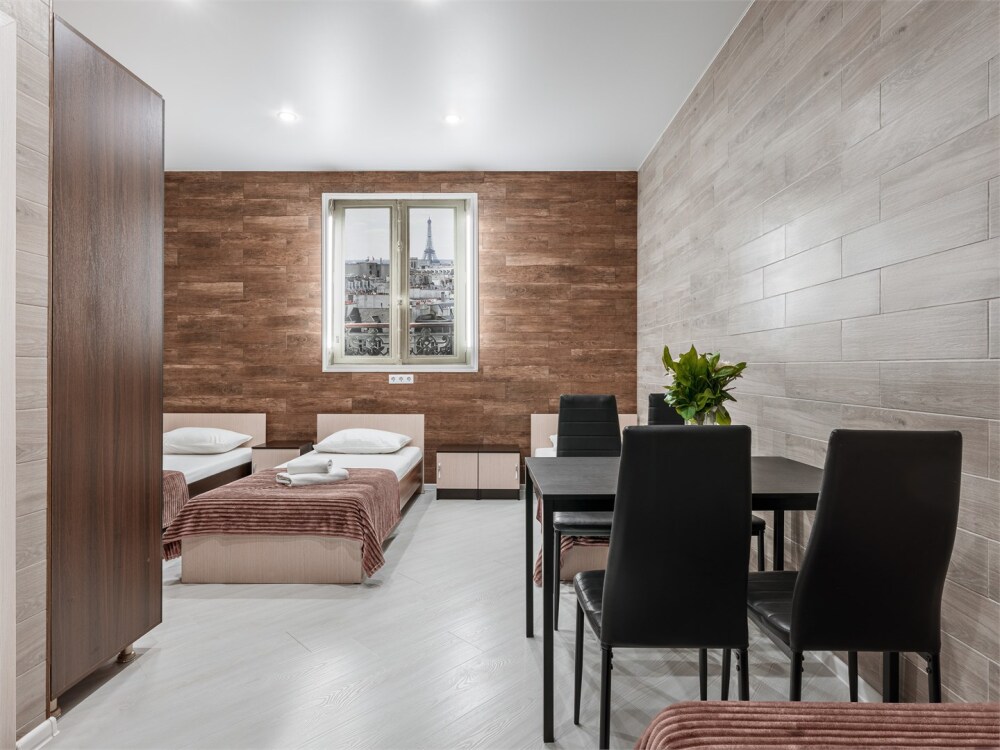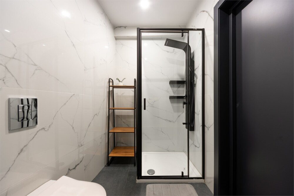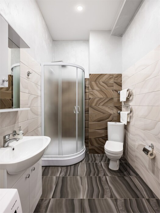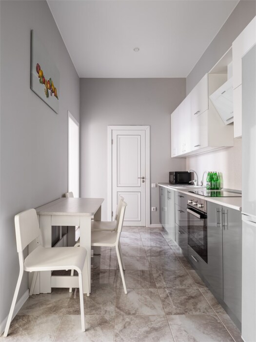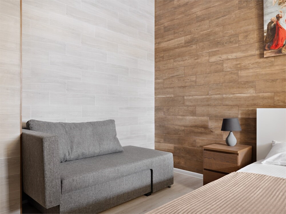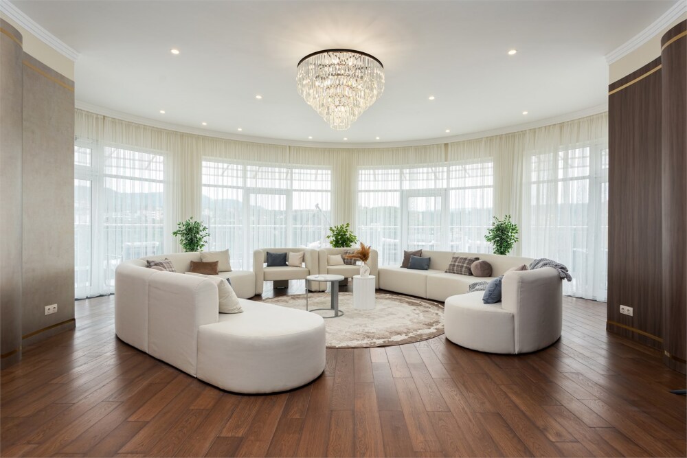Апартаменты представляют собой двухкомнатные апартаменты, включающие гостиную, спальню, лоджию, кухню и террасу с великолепным видом на город и склоны Джинальского хребта.