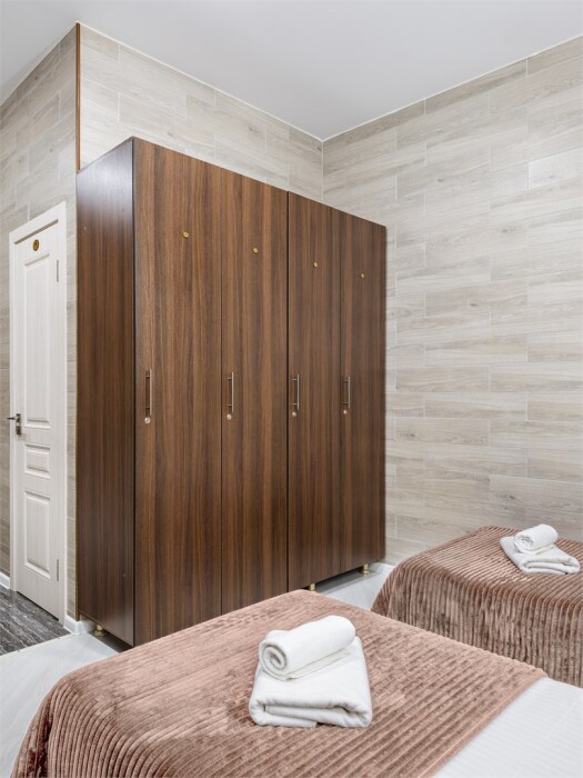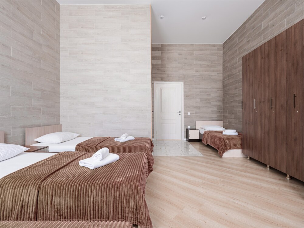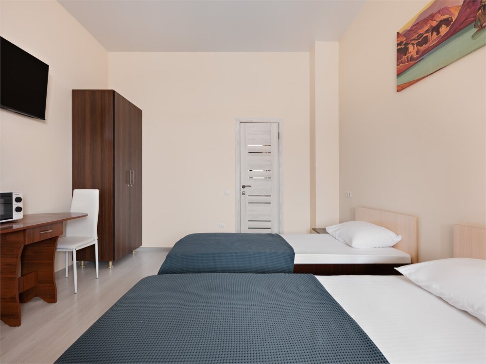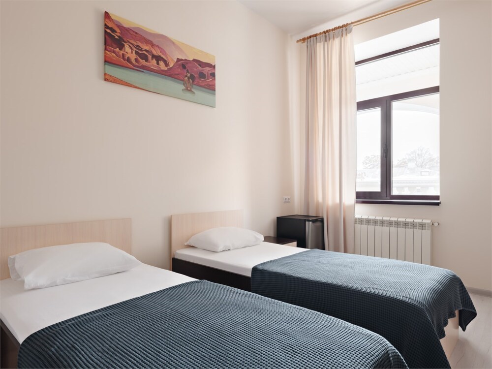 Предусмотрено размещение в комфортных номерах с панорамным видом на Джинальский хребет и курортную инфраструктуру, просторных номерах для длительного проживания, семейного отдыха и оздоровления. Выберите из разнообразных типов: от уютных стандартных номеров до роскошных люксов. Каждый номер оснащен современными удобствами для Вашего комфорта, чтобы Ваше пребывание у нас было незабываемым. Номерной фонд санатория на 70% оснащен системами кондиционирования, подробнее о комплектации выбранной категории номера, можно уточнить при бронировании. При отсутствии в номере кондиционера – предоставляются вентиляторы. Уборка комнаты и смена полотенец производится 1 раз в 3 суток, смена постельного белья - 1 раз в 5 суток. Если Вам необходима уборка в определенное время, сообщите об этом администратору.
