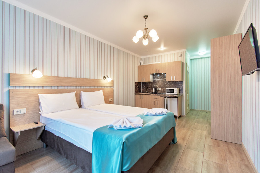 Окунитесь в атмосферу отдыха у моря и поживите в современных, комфортабельных апартаментах в сердце курорта, в Олимпийском парке в трех минутах ходьбы от моря, где расположены многочисленные рестораны и бары, а также множества достопримечательностей города.
