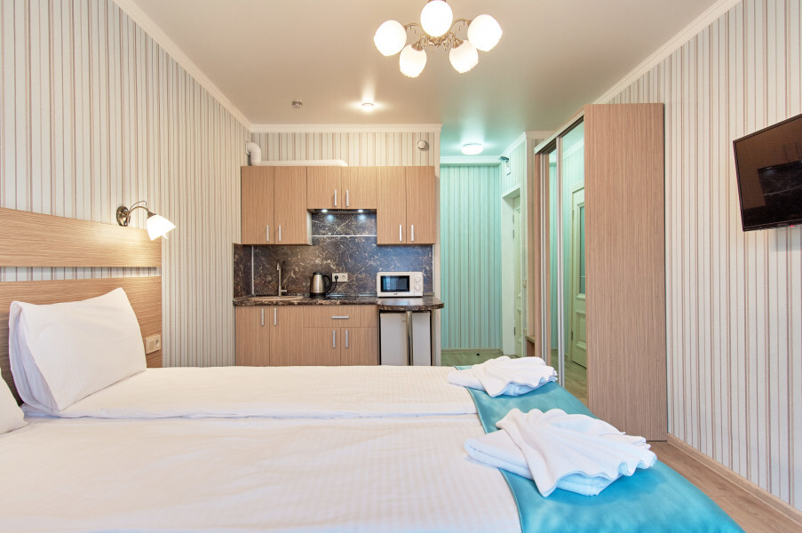 В апартаментах Вы ощутите тишину и спокойствие, так как расположены они в тихом закрытом дворе.