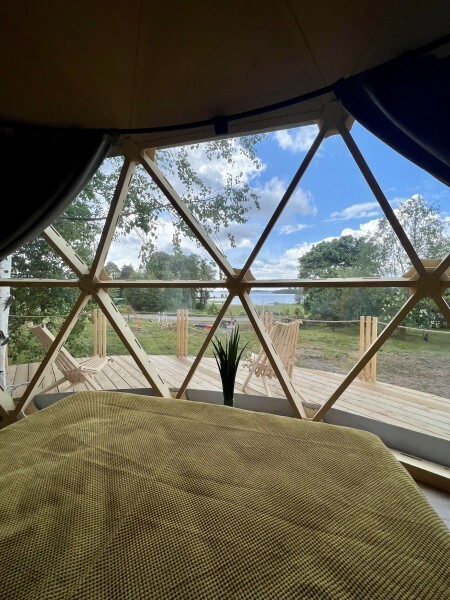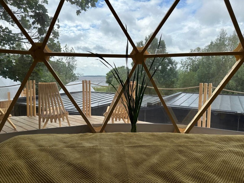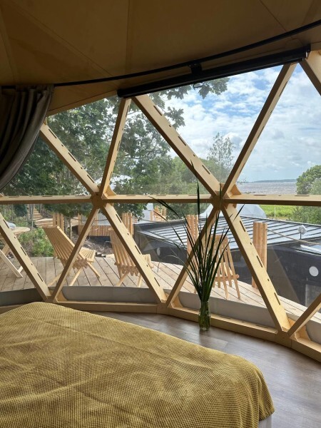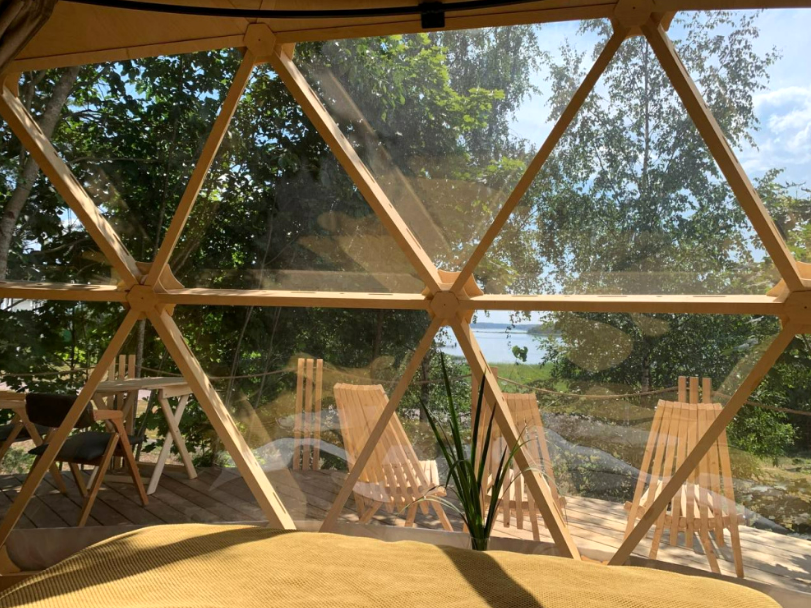 Купольный глэмп повышенной комфортности: панорама на залив с высоты 3,5 метра.