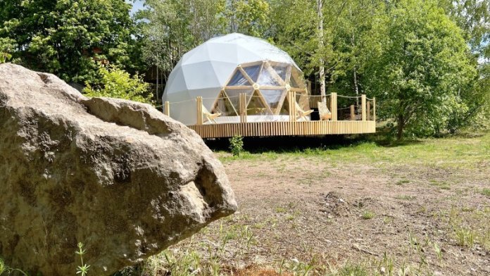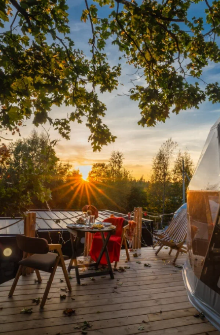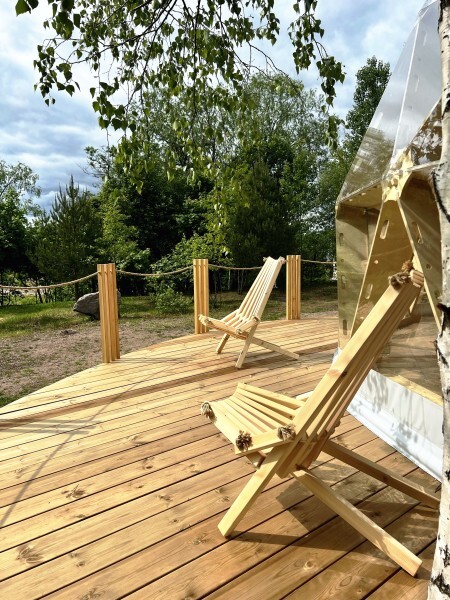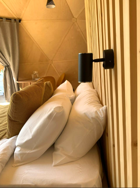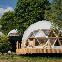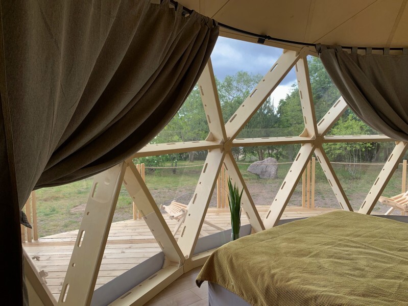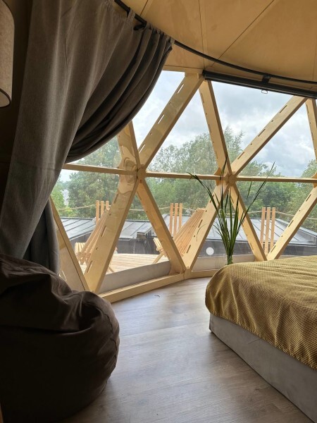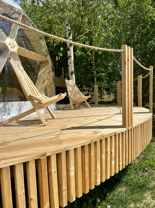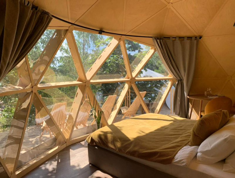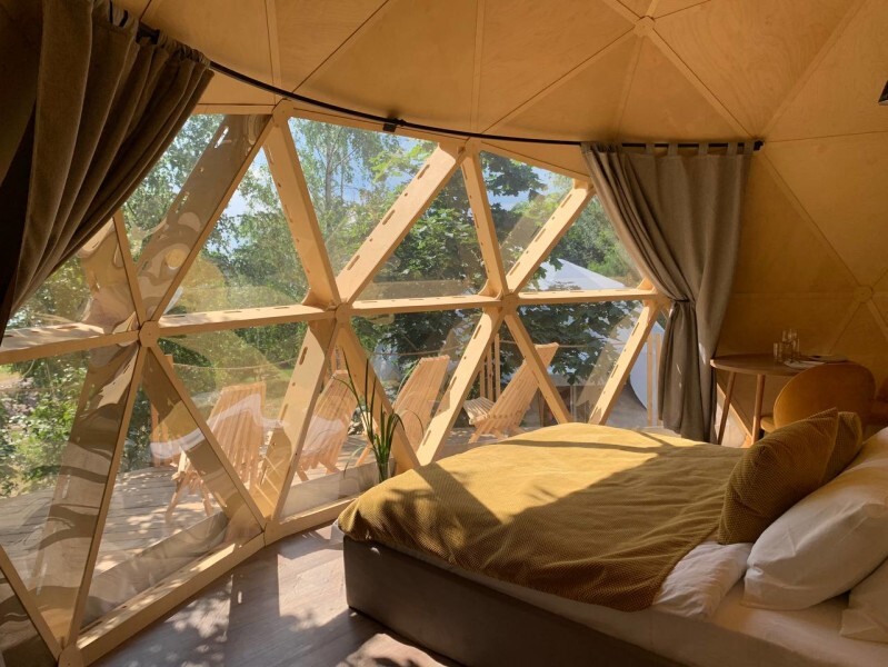 Глэмп: Уютный и современный купольный дом с панорамным остеклением и собственной террасой. Внутри Вы найдете комфортную двуспальную кровать, кухонную и обеденную зоны и современный санузел с необходимыми туалетными принадлежностями и полотенцами, а на террасе шезлонги и зона для барбекю. Если Вы планируете путешествие с ребёнком до 3-х лет, предупредите нас заранее и мы предоставим ему отдельную кроватку.