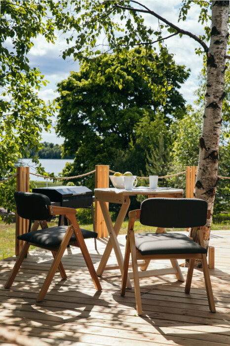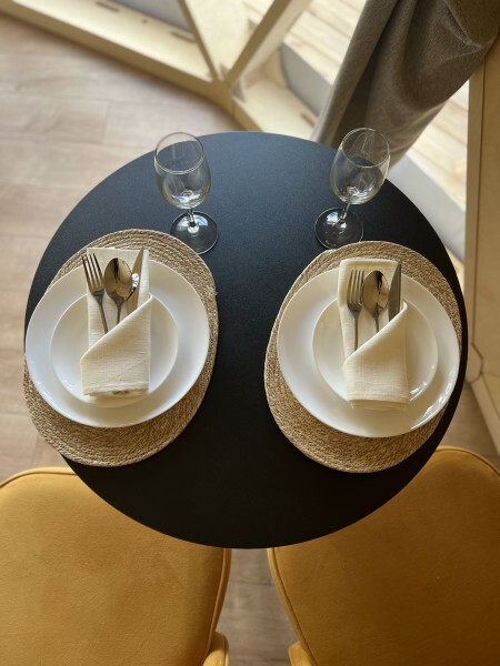 с плитой, двухместный диван в обеденной зоне и современный санузел с необходимыми туалетными принадлежностями и полотенцами, а на террасе шезлонги и зона для барбекю. Если Вы планируете путешествие с ребёнком до 3-х лет, предупредите нас заранее и мы предоставим ему отдельную кроватку.