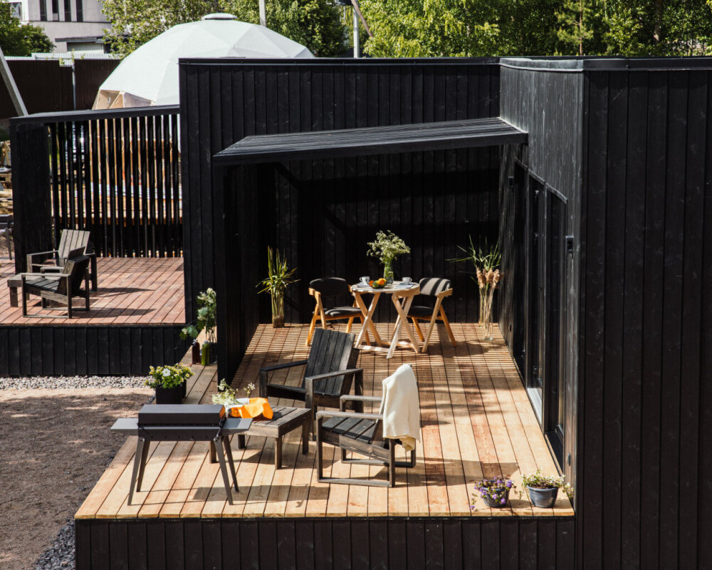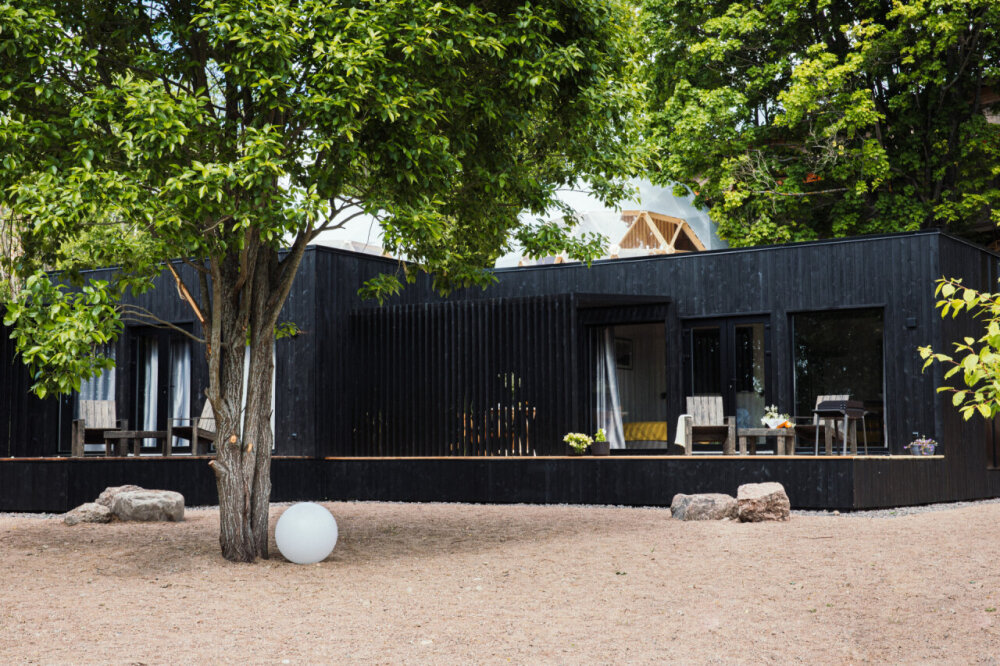 В каждом домике максимально может разместиться 2 взрослых и 2 ребёнка, для самых маленьких гостей мы предусмотрели отдельные спальные места.