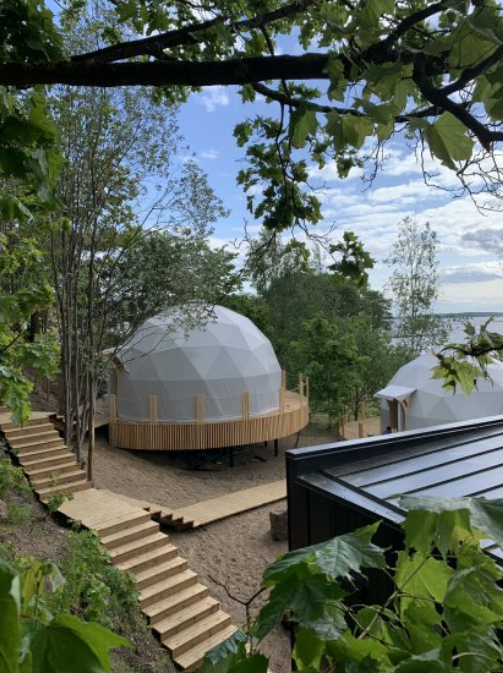 Купольный глэмп повышенной комфортности: площадь 30 кв.м., панорама на залив с высоты 3,5 метра.