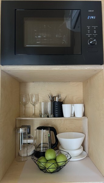 Вы можете заселиться в свой домиком без встречи с сотрудниками глэмпинга с помощью бесконтактного доступа, например, если Вы приехали очень рано или очень поздно, а может просто не хотите лишнего общения.
