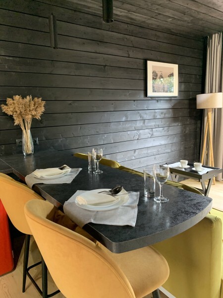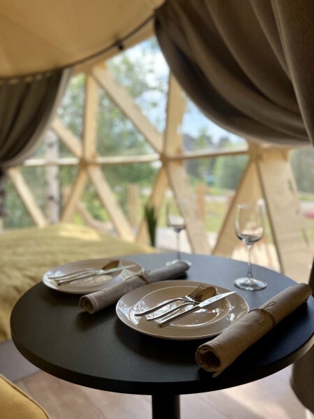 Лодж: Просторный и комфортный лодж с панорамным остеклением с выходом собственную на террасу. Внутри Вы найдете комфортную двуспальную кровать, кухню