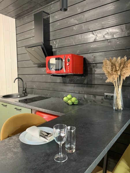 В каждом нашем домике Вы найдёте оборудованную кухонную зону со всей необходимой техникой и посудой. В лоджах даже есть плита, поэтому Вы сможете быть абсолютно автономными. Но если готовить не хочется, мы подобрали для Вас лучшие доставки Выборга.