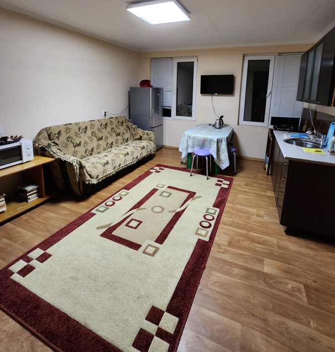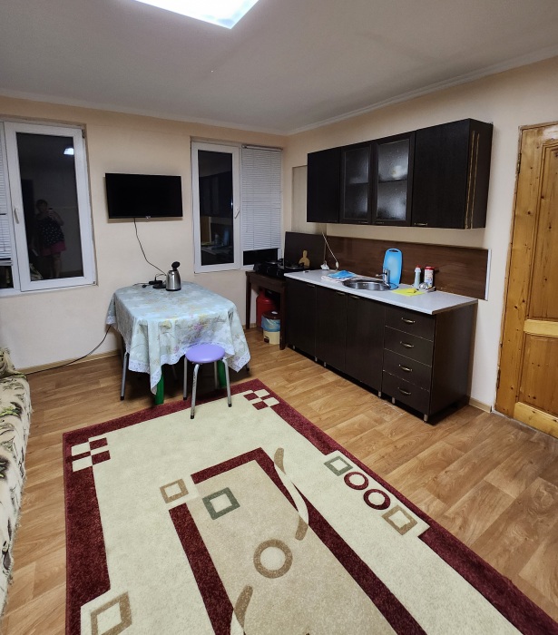 Сдаётся часть дома под ключ. По сути - это две двухкомнатные квартиры на 2 этаже дома с отдельными входами, санузлами и кухнями. На территории есть парковка на 5 автомобилей. Рядом с домом, в 5 минутах находится здравница «Жемчужина Абхазии» с 2 бассейнами (посещение платно, 150 рублей) и столовой.