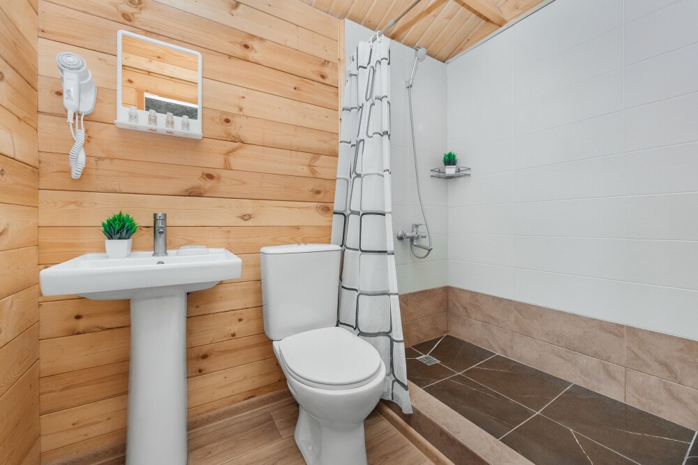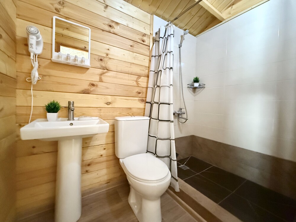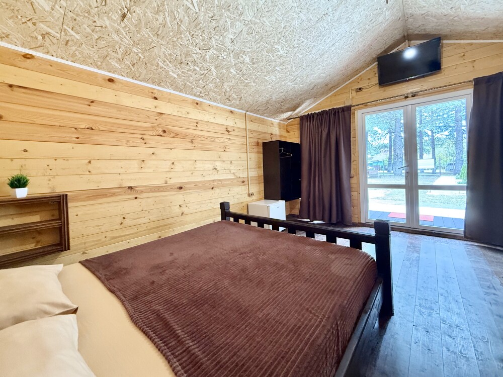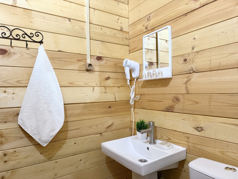 Для наших гостей мы предлагаем коттеджные домики площадью 23 кв. м, полностью оборудованные для комфортного проживания. В каждом домике есть фен, мини-холодильник. Домики оснащены кабельным телевидением, WI-FI, также имеется кондиционер и ванная комната, где для Вас подготовлены мыльные наборы.