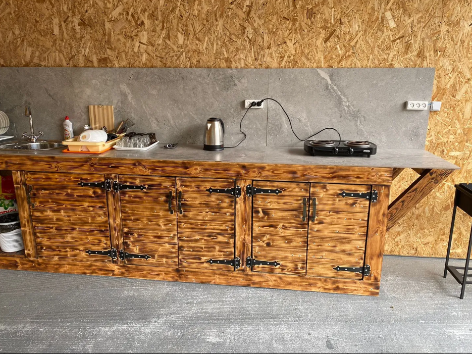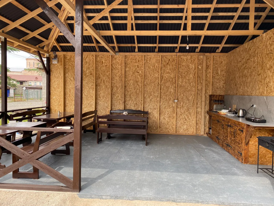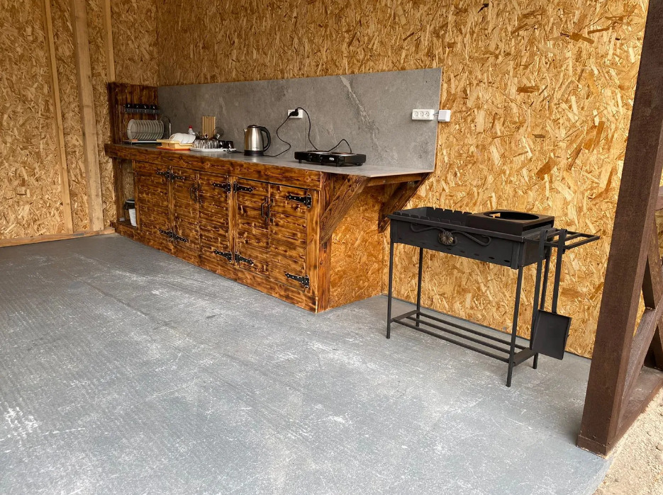 На территории мини-отеля есть общая кухня-веранда, полностью оборудованная для самостоятельного приготовления пищи, стиральная машина, гладильная доска, утюг, зона барбекю. На территории предоставляется парковка для Вашего автомобиля, которая входит в стоимость.