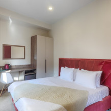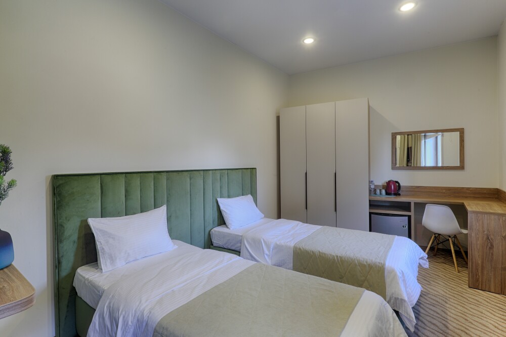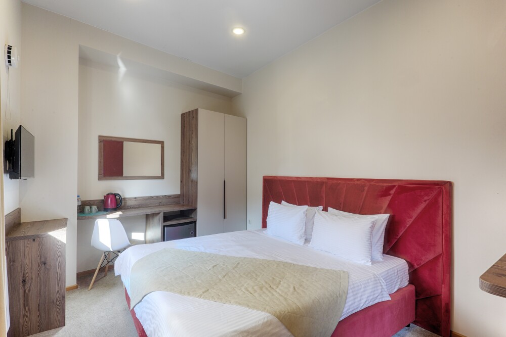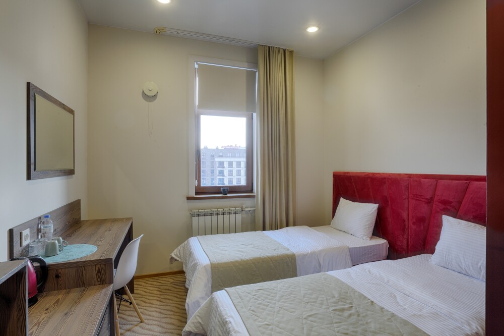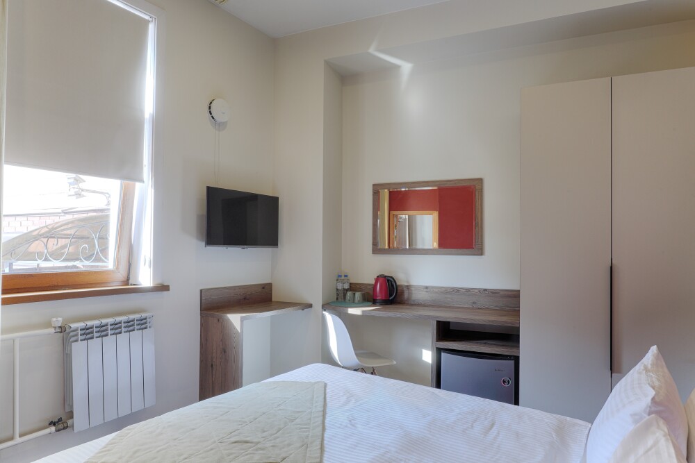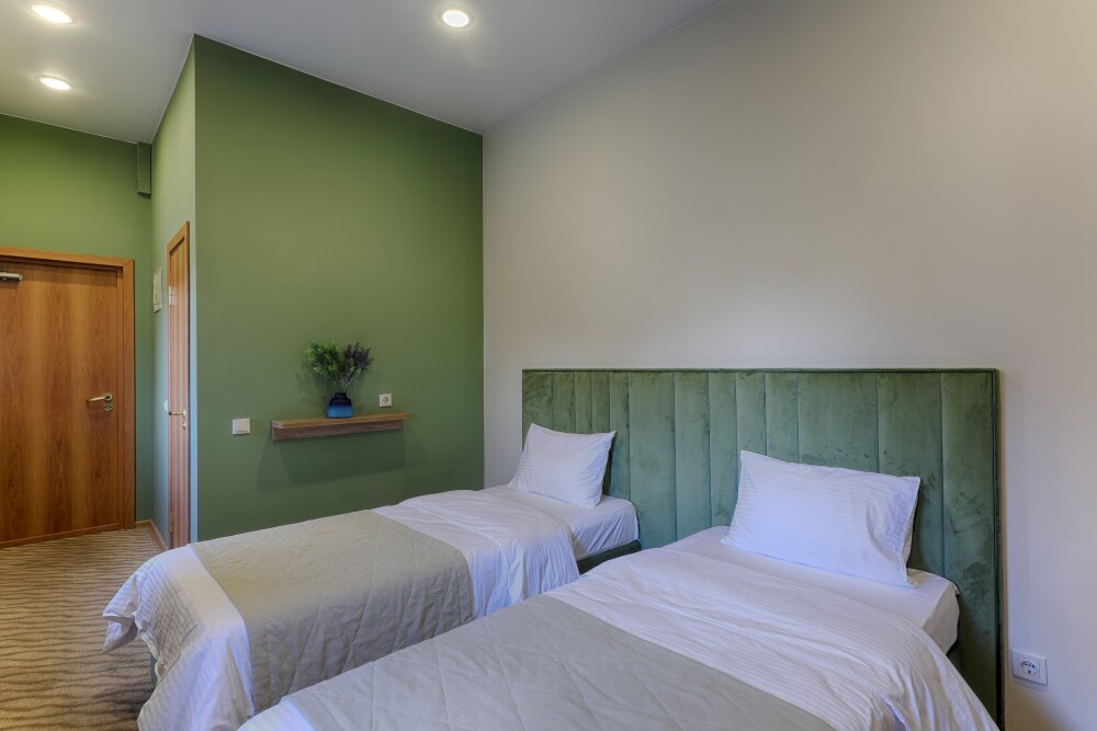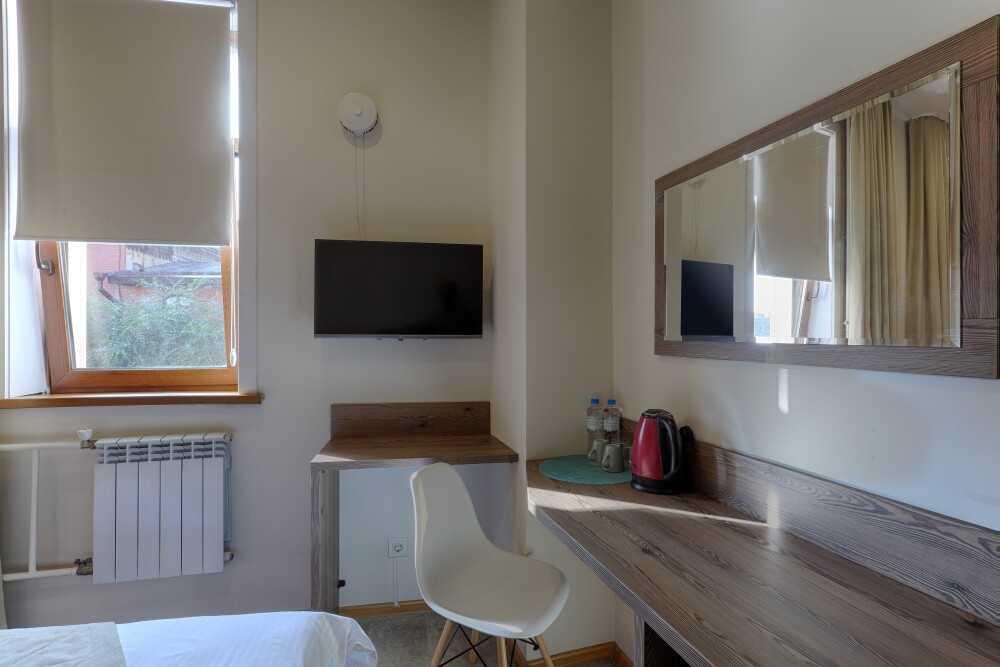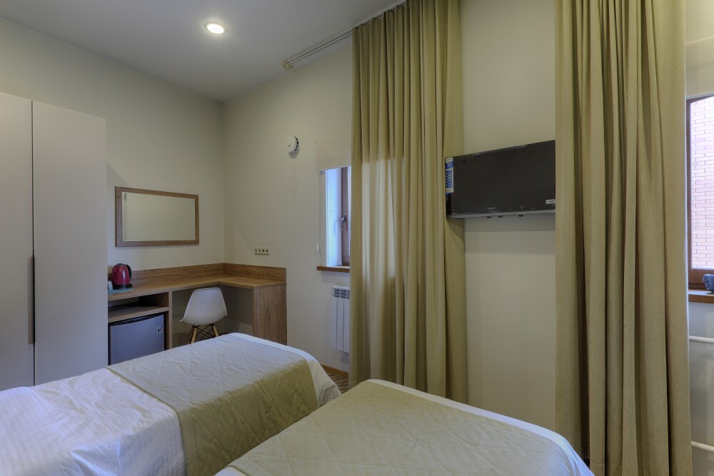 В номере гостей ждут телевизор, холодильник, электрочайник, санузел, фен. Номер укомплектован одной двуспальной кроватью или двумя односпальными, уточняйте при запросе.