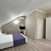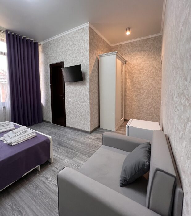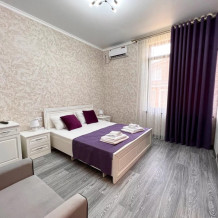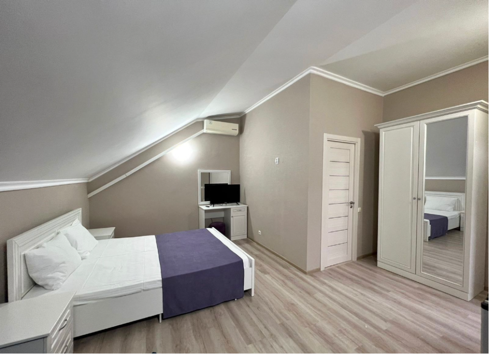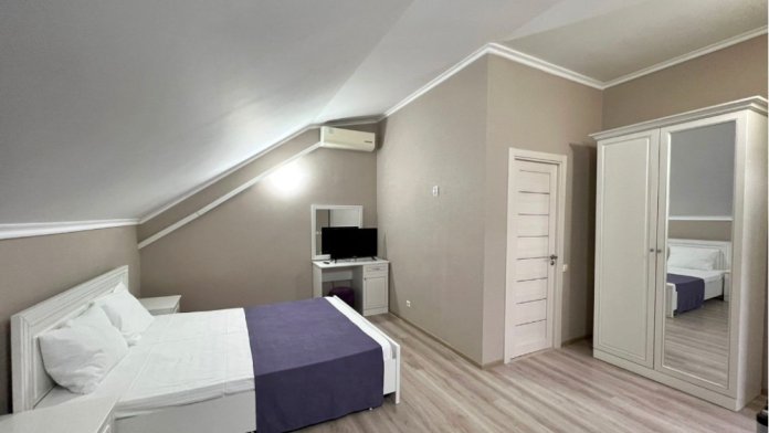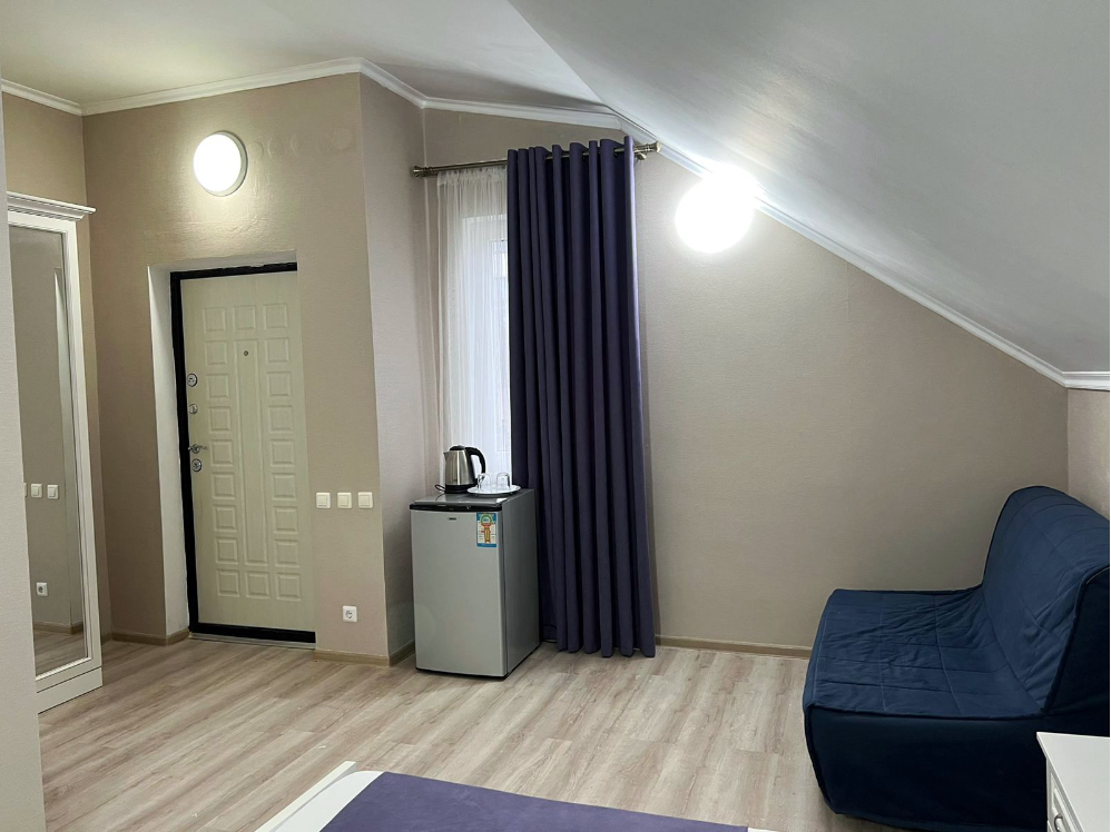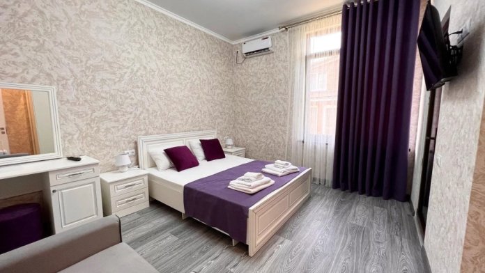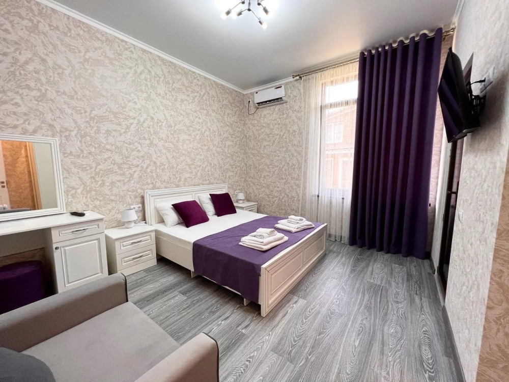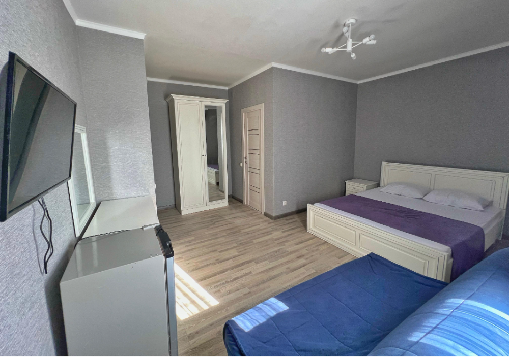 Наш гостевой дом предлагает уютные номера. Все номера обновлены и оснащены двуспальной кроватью, холодильником, телевизором с плоским экраном, прикроватными тумбочками, шкафом. В номере также имеется ванная комната с душем, фен, туалетные принадлежности, бесплатный wi-fi.