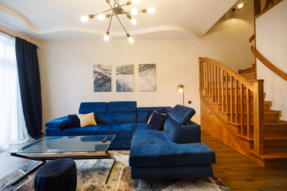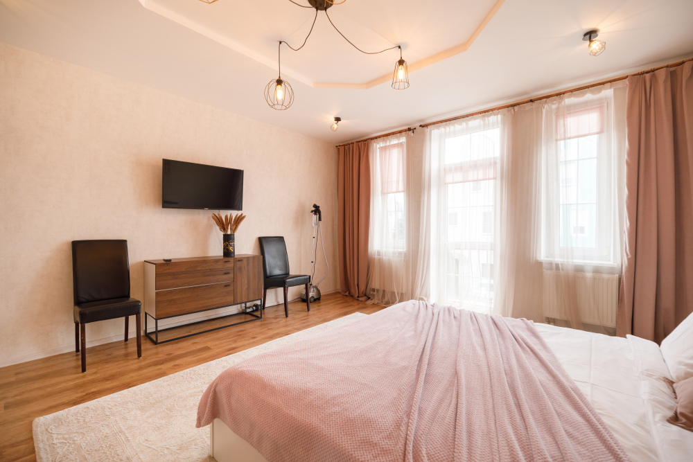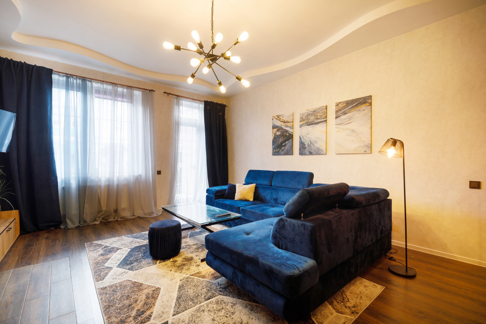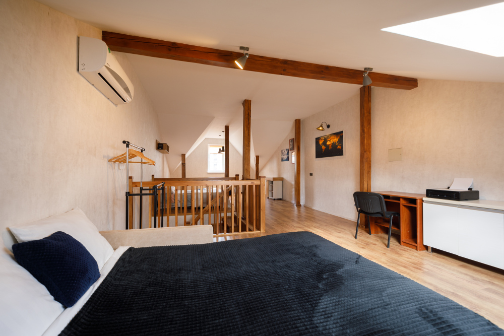 Оборудованный всем необходимым таунхаус предлагает Вам две просторные спальни с телевизорами на втором уровне, а на первом уровне Вы найдете гостиную с камином и угловым диваном. Третий уровень представляет собой свободную планировку, оснащенную двумя двуспальными диванами и рабочим местом для работы удалённо.