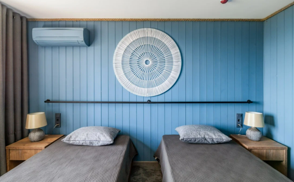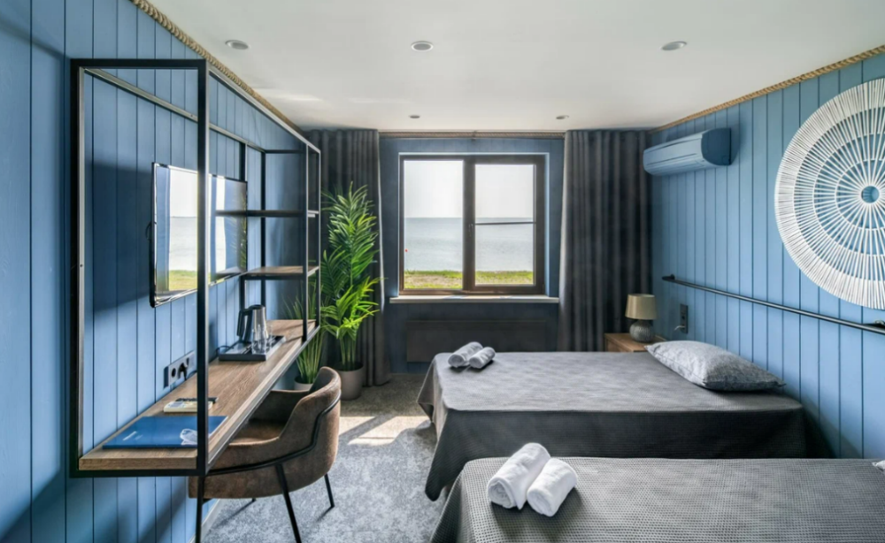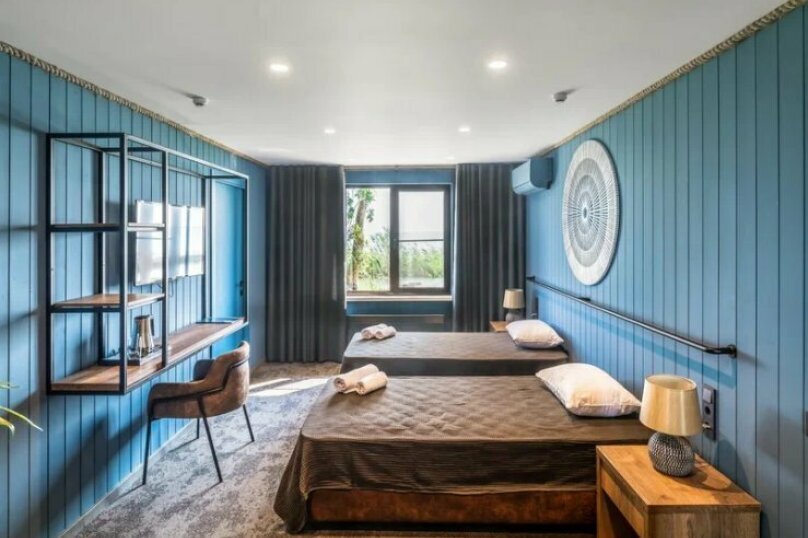 Уютные номера с лаконичным дизайном, площадью около 22 кв. м, с двумя трансформируемыми кроватями.