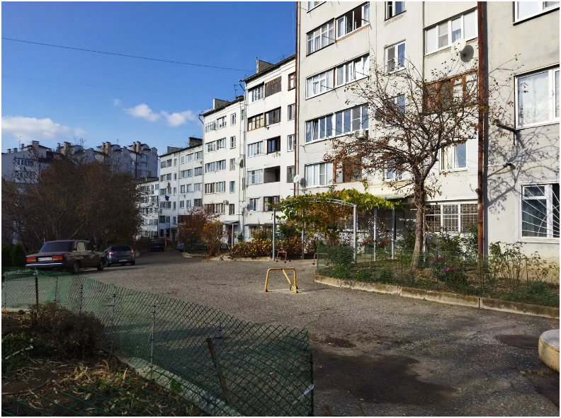 Во дворе детская площадка. В шаговой доступности: магазины «Пятерочка», «Народный», две аптеки, «Гиро», «ПироговДом» (готовая еда), газетный киоск, магазин «1000 мелочей «, хозтовары, 3 лавки овощи и фрукты.