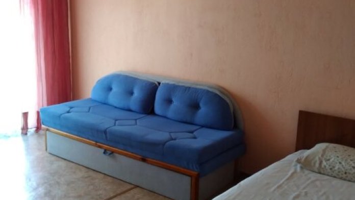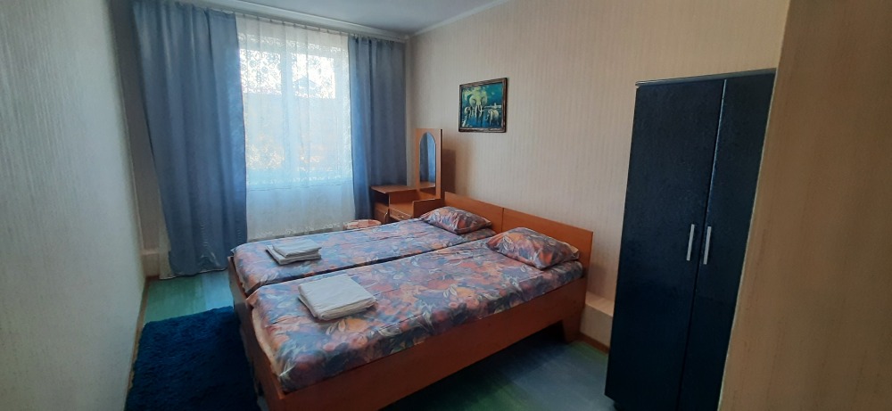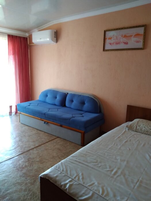 В номере одна двуспальная кровать и раскладной двуспальный диван.