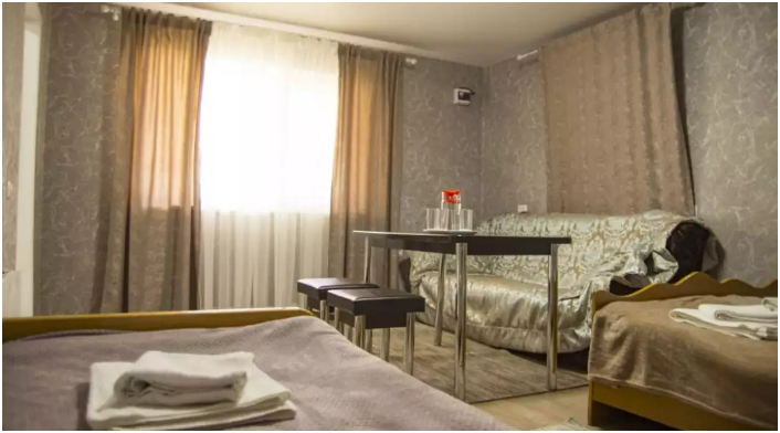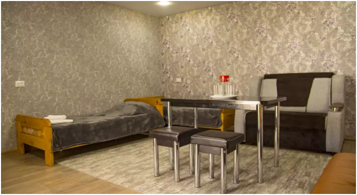 Комплектация мебели в номерах разная: двуспальные и односпальные кровати, диван, кресло.