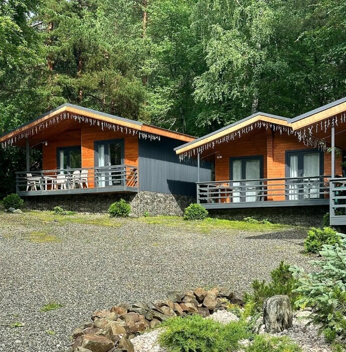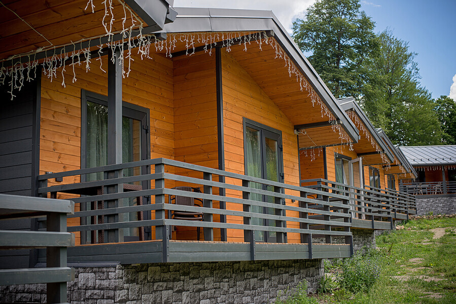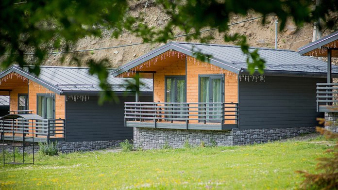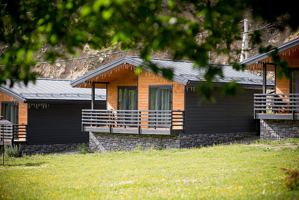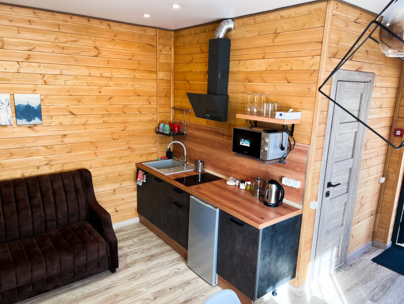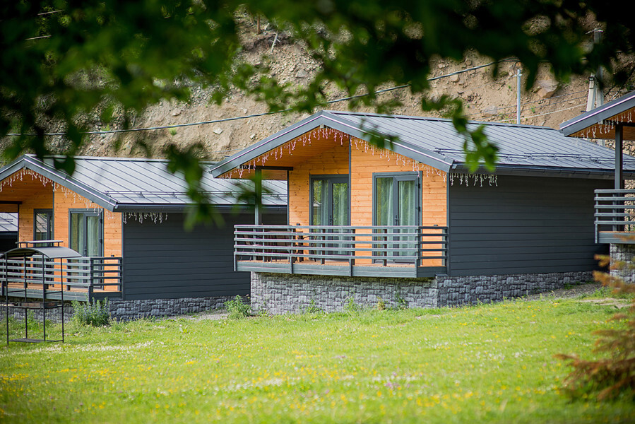 Стильные и очень уютные домики класса Люкс имеют всё для комфортного отдыха: ТВ, Wi-Fi, варочная панель, холодильник, микроволновая печь, вся необходимая посуда, постельное белье и полотенца, одноразовые тапочки. В каждом домике комплимент для гостя в виде Горного чая. Из всех домиков открывается вид на горы.
