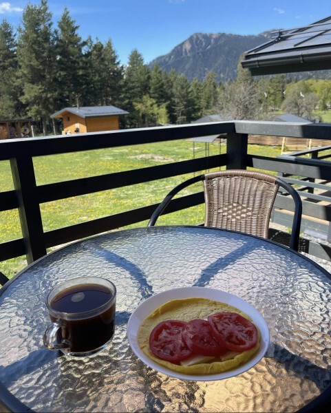 В номере своя мебелированная терраса с потрясающим видом на горы.