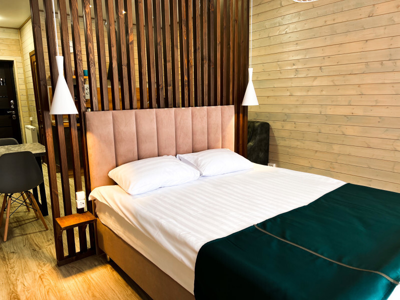 Дизайнерский номер категории Студия расположен в корпусе «Панорама».
