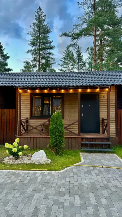 Домики рассчитаны на 2, 3, 4 и 5 человек. Также есть возможность предоставить дополнительное место в каждом домике. Вся территория уложена брусчаткой - наиболее экологичное покрытие, не нагревающееся в жару и не дающее вредных испарений, позволяющее сохранять зеленые насаждения, а также Вашу обувь и машины в сохранности.