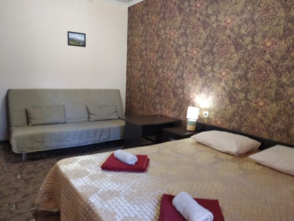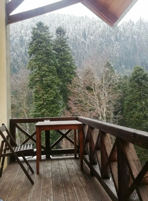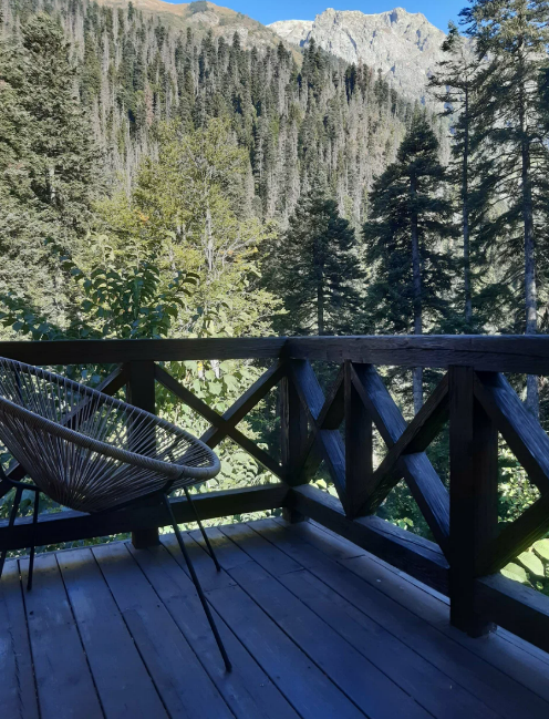 Номера обустроены всем необходимым для комфортного проживания: удобные кровати, телевизор, холодильник, собственная ванная комната. В некоторых номерах есть балкон или выход в холл. Из окон номеров открывается великолепный вид на Тебердинский заповедник, горные вершины и реку.